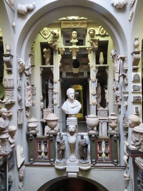 We visited Soane’s Museum more than 30 years ago at the urging of our dear friend Alan Eyles. Alan was an architect, and Soane’s museum is a paradise for architects. We didn’t fully appreciate the genius of the man (or the place) on our first visit, experiencing it as a discombobulated jumble of this and that. On this visit, we were lucky to get on an excellent guided tour, which gave me a deep appreciation for the man and the place.