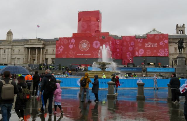 Saturday, coronation day, was cold and drippy. I was quite happy to watch the ceremony in Westminster Abbey and the beginnings of the parade from the comfort of our cozy apartment.