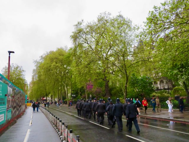 The streets were heaving (as the Brits would say), with barricades up along most major streets and police everywhere. The UK mobilized something like 30,000 police and civilian reserves to line those barricades.