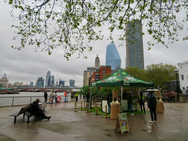 Friday morning we took the Tube into London (Mansion Street stop) and booked into our weekend lodgings at the Cove Cannon Street, a “serviced apartments” hotel. We had a very comfortable bed-sit apartment with a full galley kitchen located right in the heart of the city.