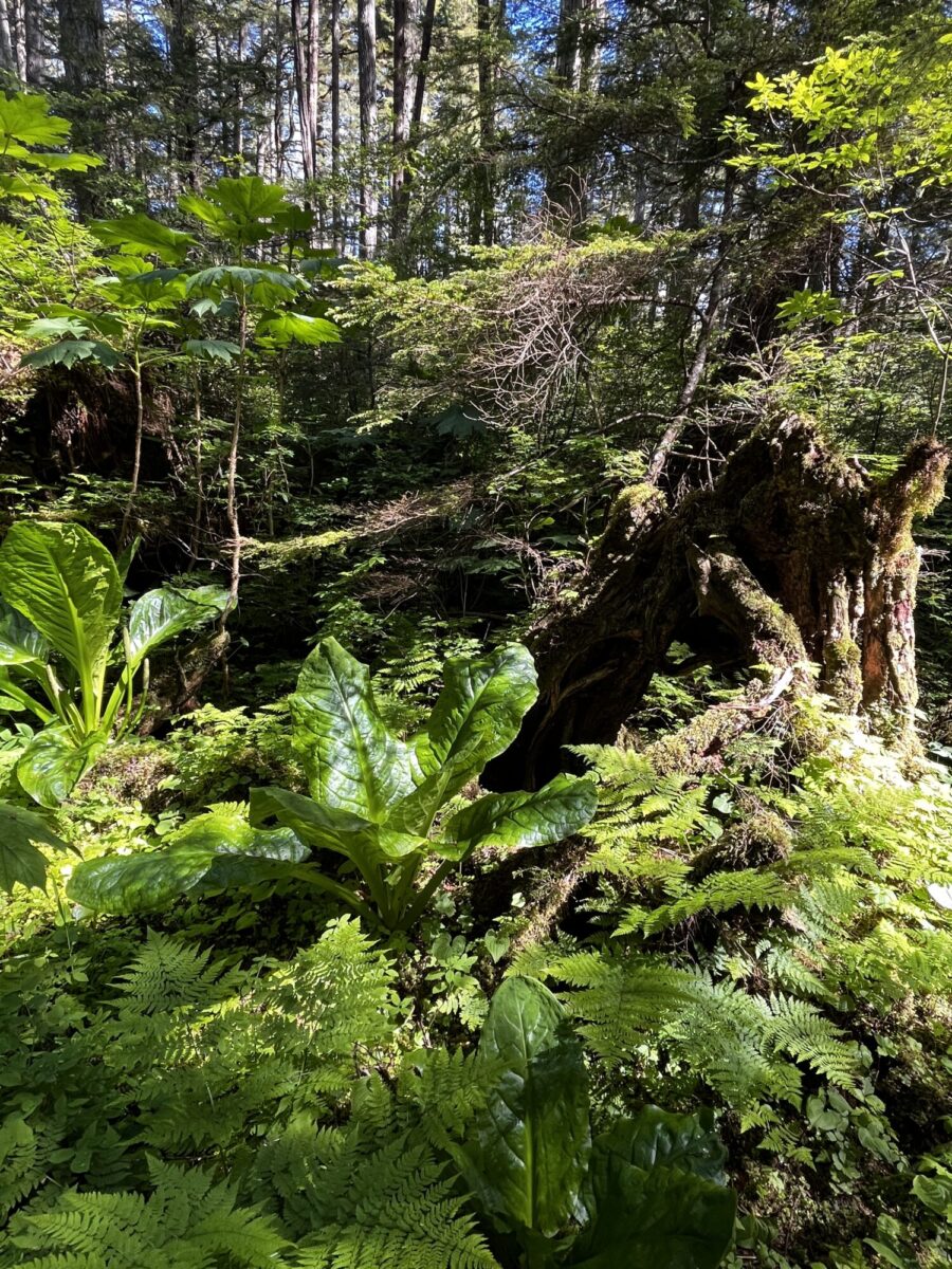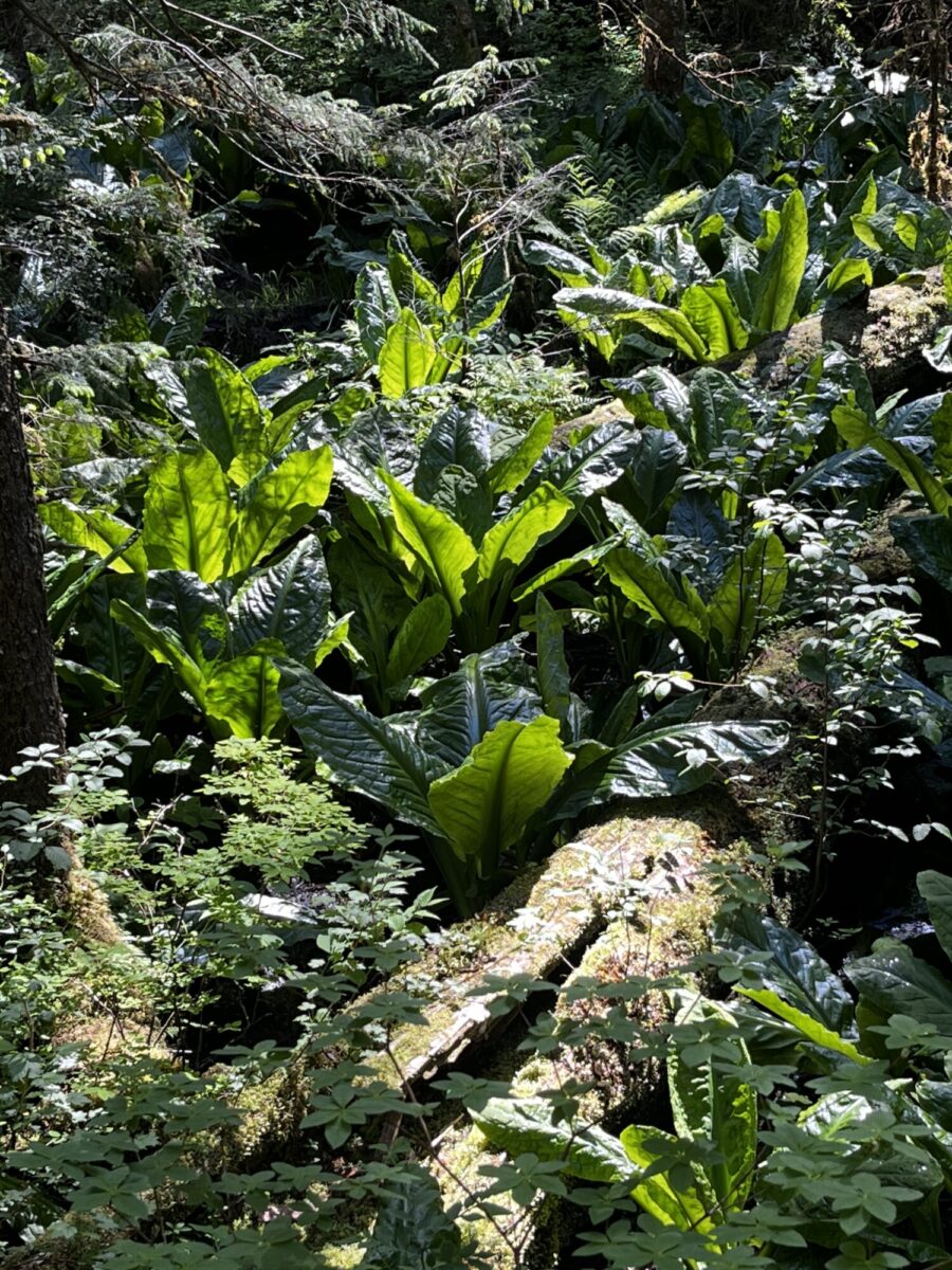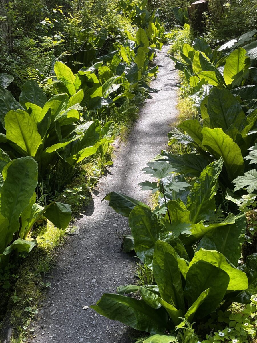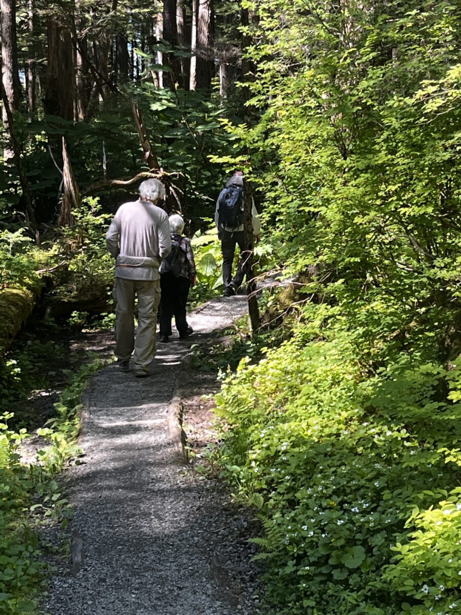 We decided to eat in that night, so Matt and I made a grocery run, then the 3 of us drove north on Douglas Island to meet Gary and Crystal at the Rainforest Trail. Here’s the trail description: