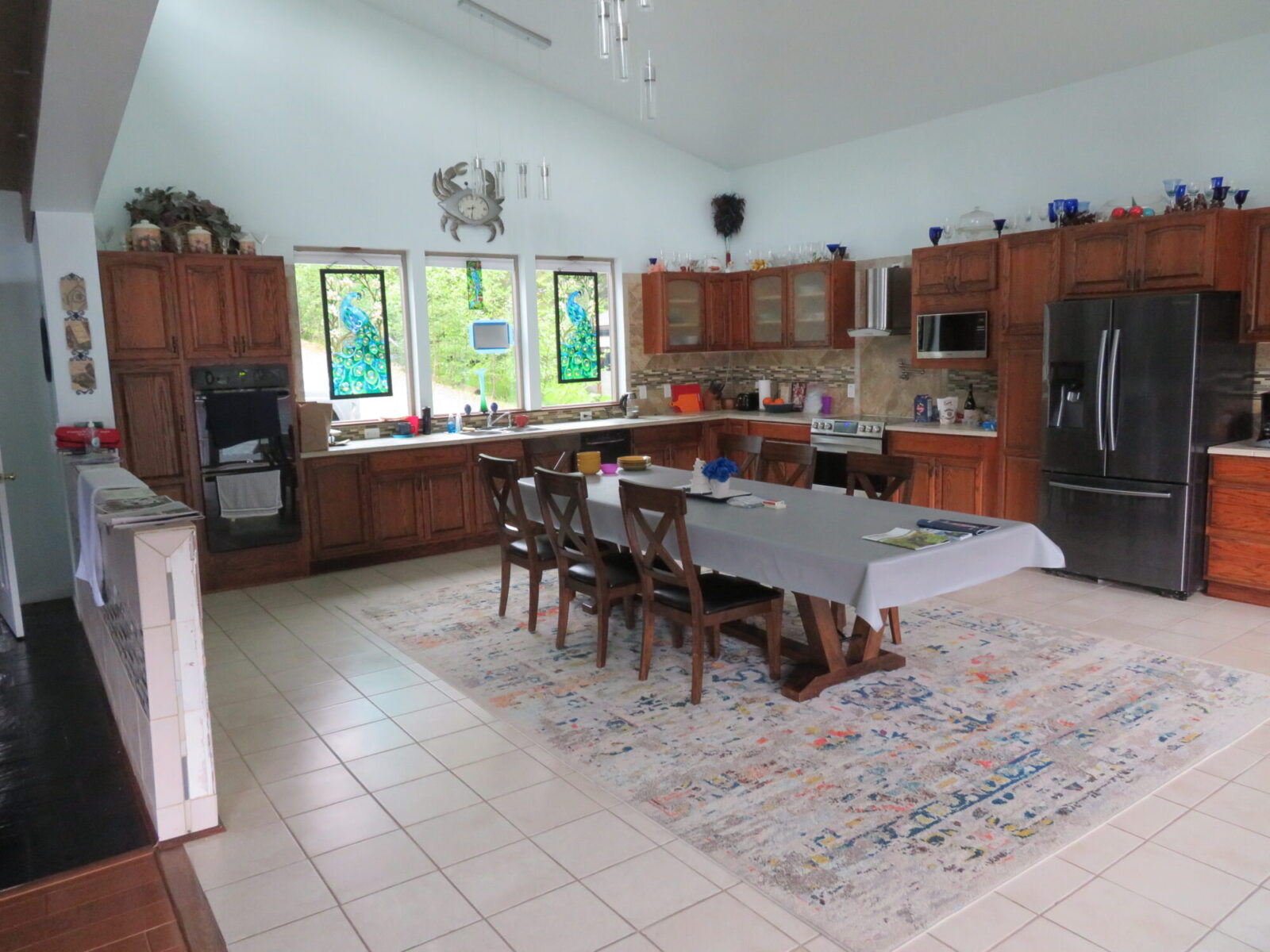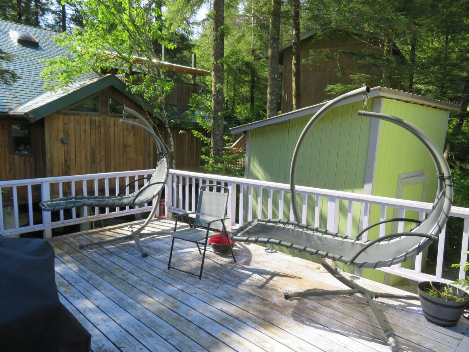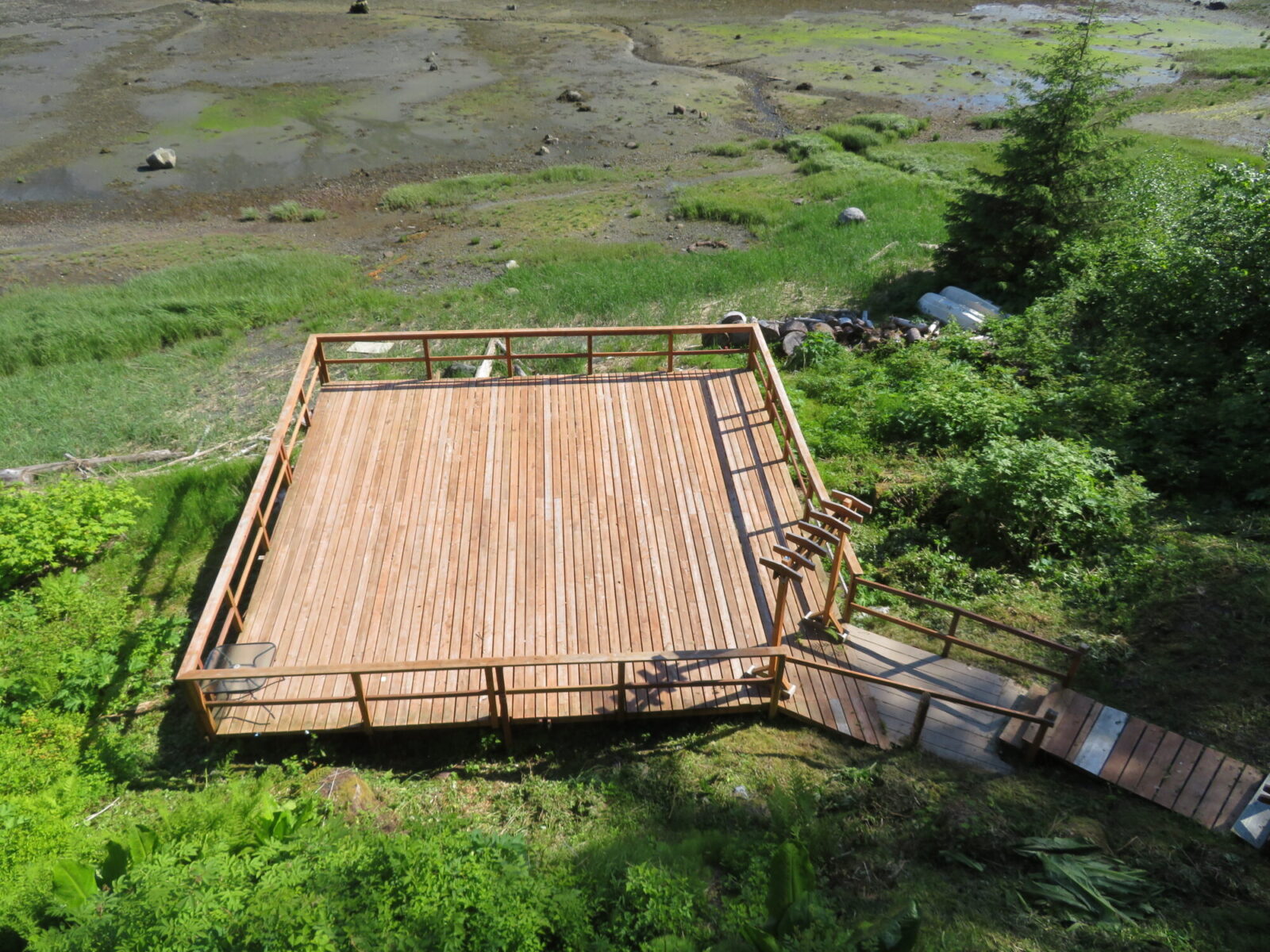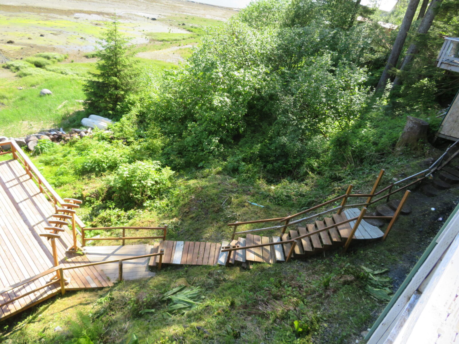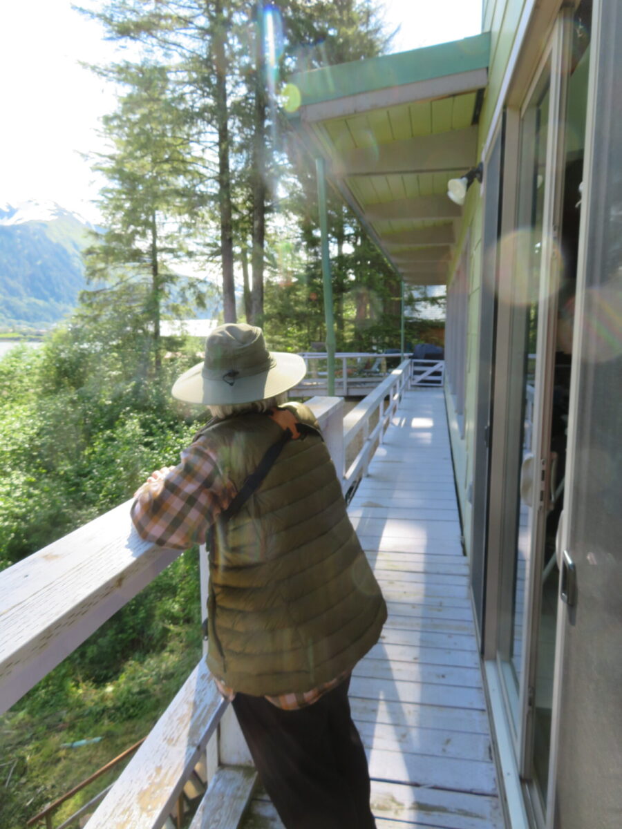 Now a word about our Juneau vacation home. It was a lovely place in many ways, with lots of space for five people: 4 bedrooms and 3 baths downstairs; a gigantic open plan kitchen/dining/living room + a small sitting room and a TV lounge upstairs; outside decks all along the upper floor with stairs down to a flat party deck on the edge of the tideline.