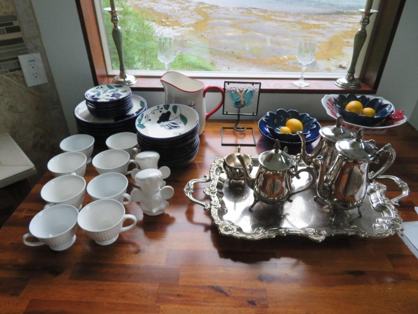 And then there were the collections… On arrival, both dining tables, the eating nook and the coffee table were set up with multi-course place settings of china, silver and crystal service. Not wanting to break anything, we packed them off to the sideboard, then discovered another dozen fancy dinner services packed away in the (many) cupboards.