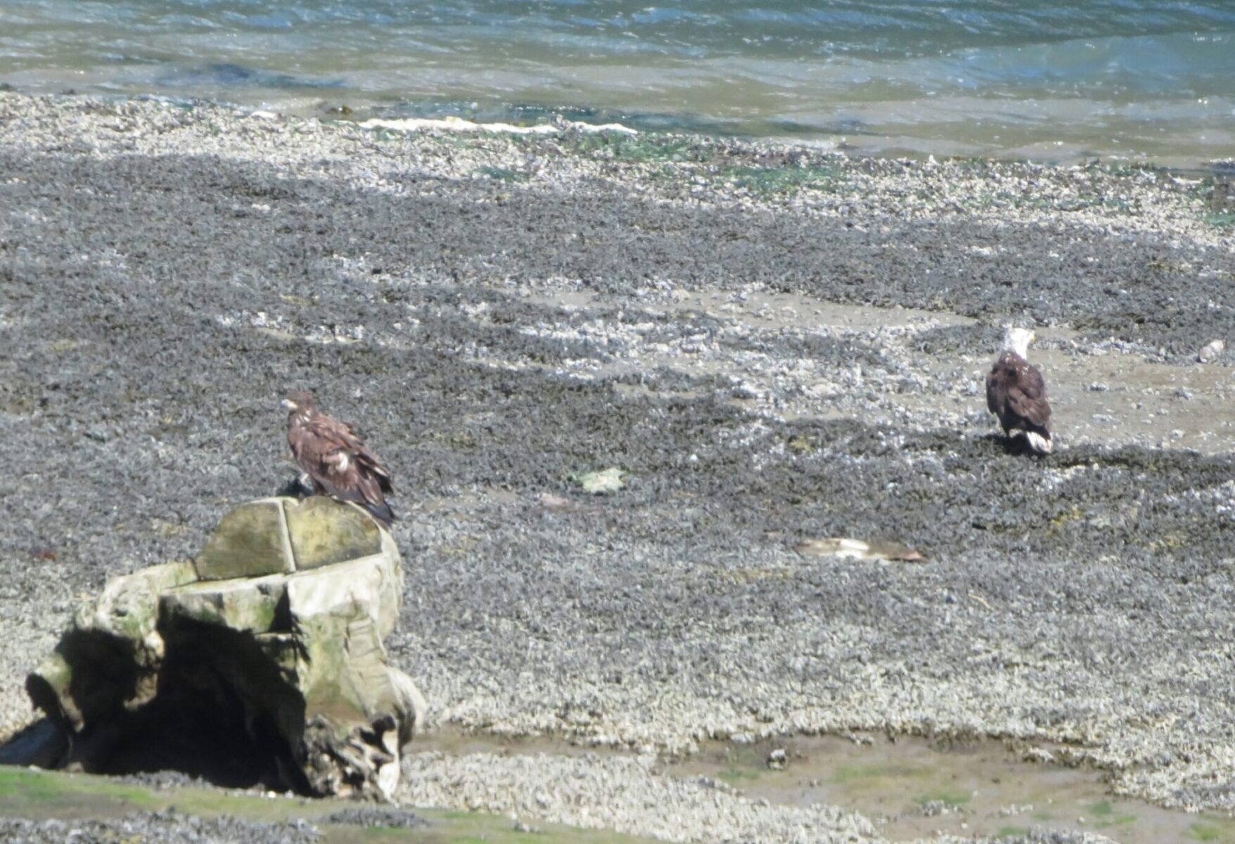 We emerged on the rocky beach to find an adult and juvenile bald eagle posing for us. It’s a gorgeous spot, especially on a sunny day like this one.