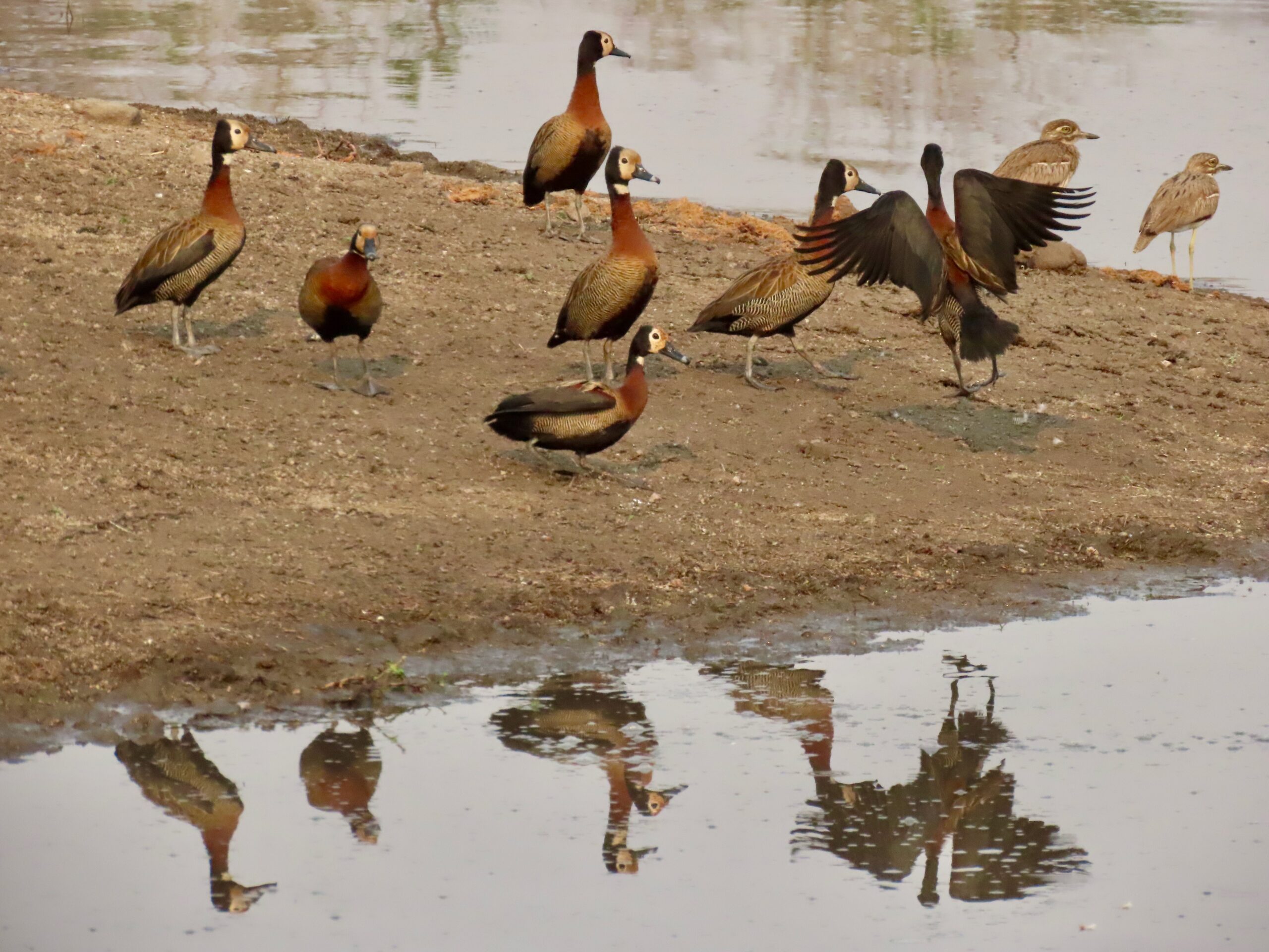 A flock of White-faced Whistling Ducks were hanging out on the shoreline, enjoying the peaceful morning.