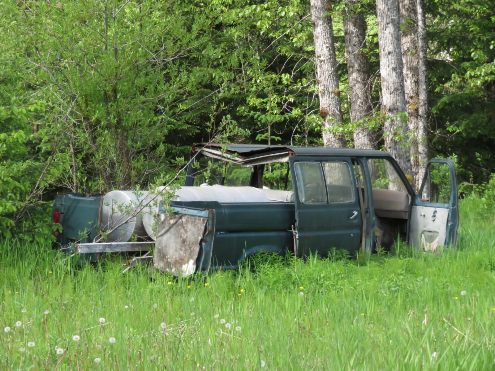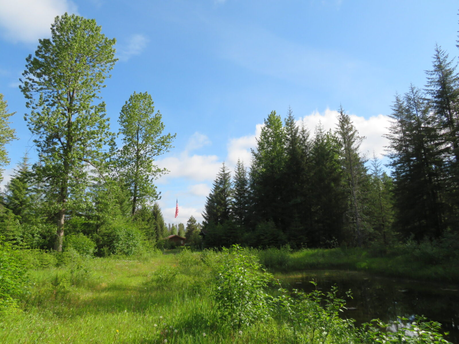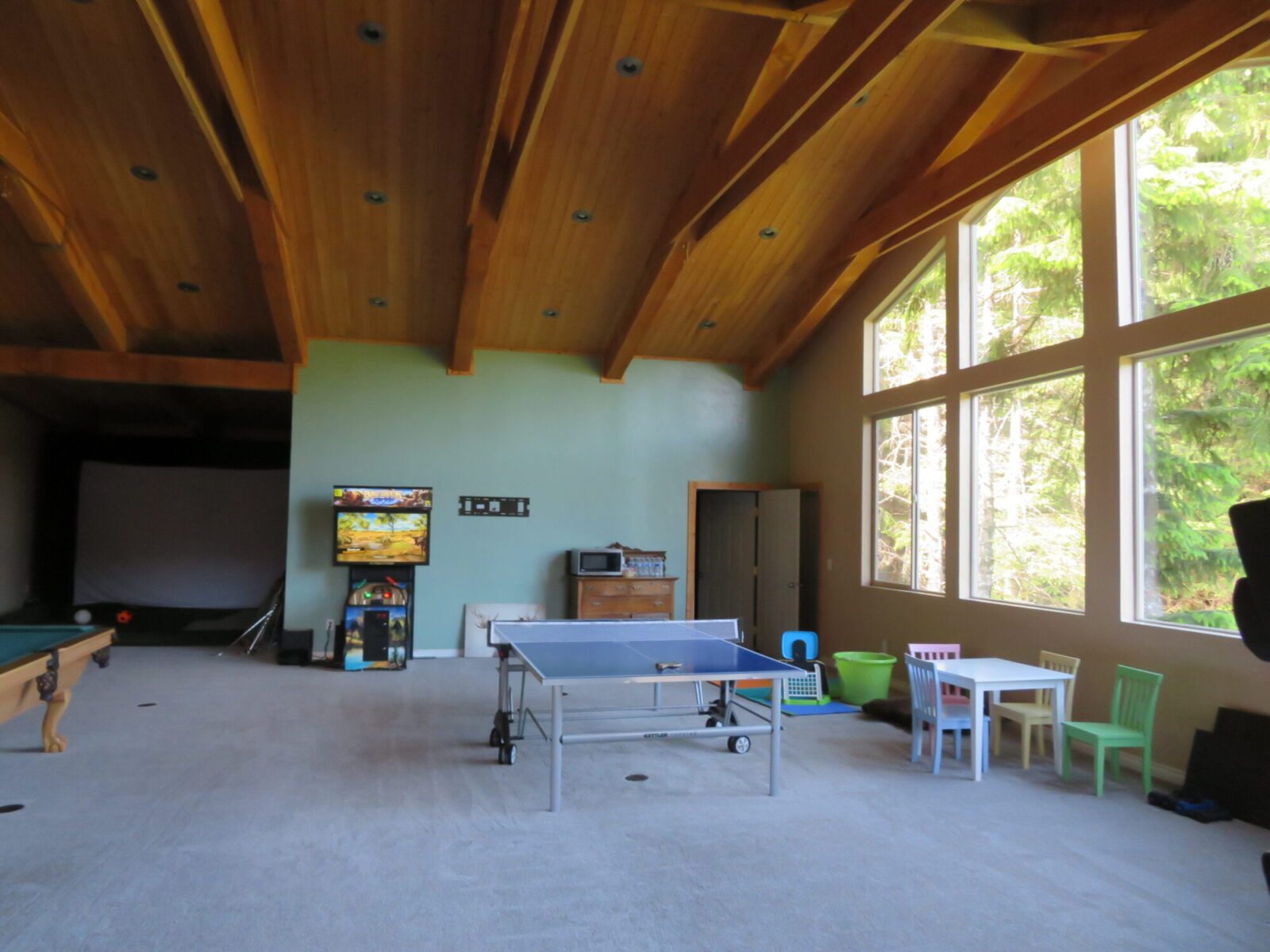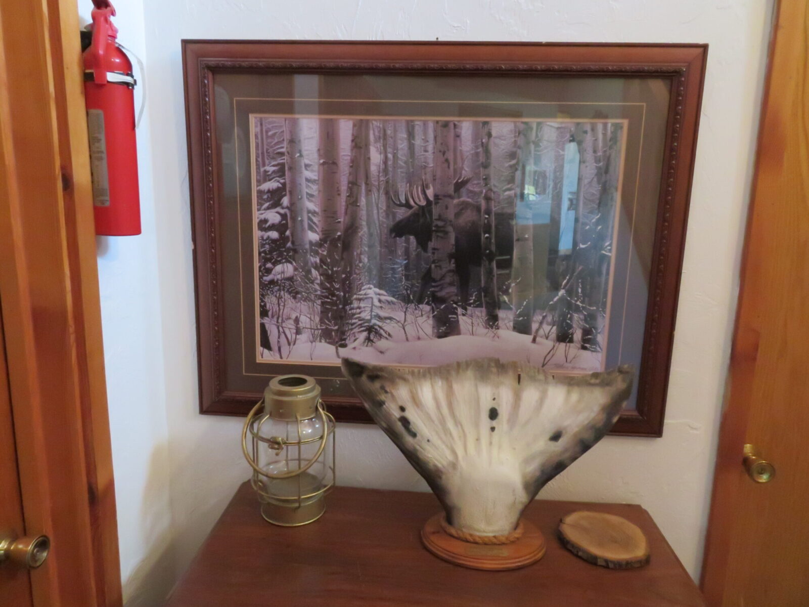 One lovely feature was this deck overlooking a meadow (formerly an airplane landing strip) filled with wild strawberries. We were told that the meadow gets a lot of wildlife visitors, and we were fortunate to see a little black bear bear munching in the meadow on our next-to-last day.Â