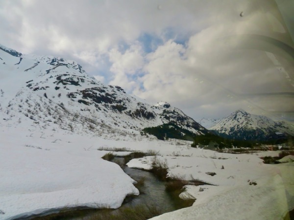 Once free of Anchorage’s sprawling suburbs, our train traveled south along the Turnagain Arm of the Cook Inlet, past miles of mudflats created through deposition of glacial silt.