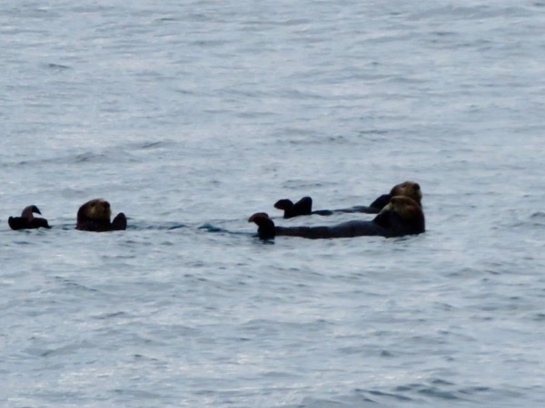 We encountered a family of otters in typical otter pose: floating on their backs, back feet pointed skyward.