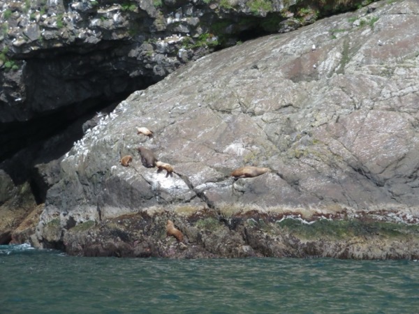 We saw Stellar Sea Lions swmiing and basking on convenient rock faces.