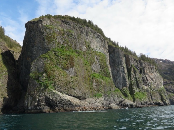 Near Caines Head at the end of the inlet, we pulled in close for views of geologic features and with hopes of spotting Dall Sheep