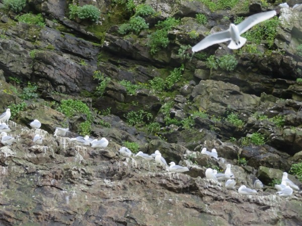 Several of these species nest on rocky cliffs on the islands we visited across from Callisto Point, with gulls dominating by numbers.