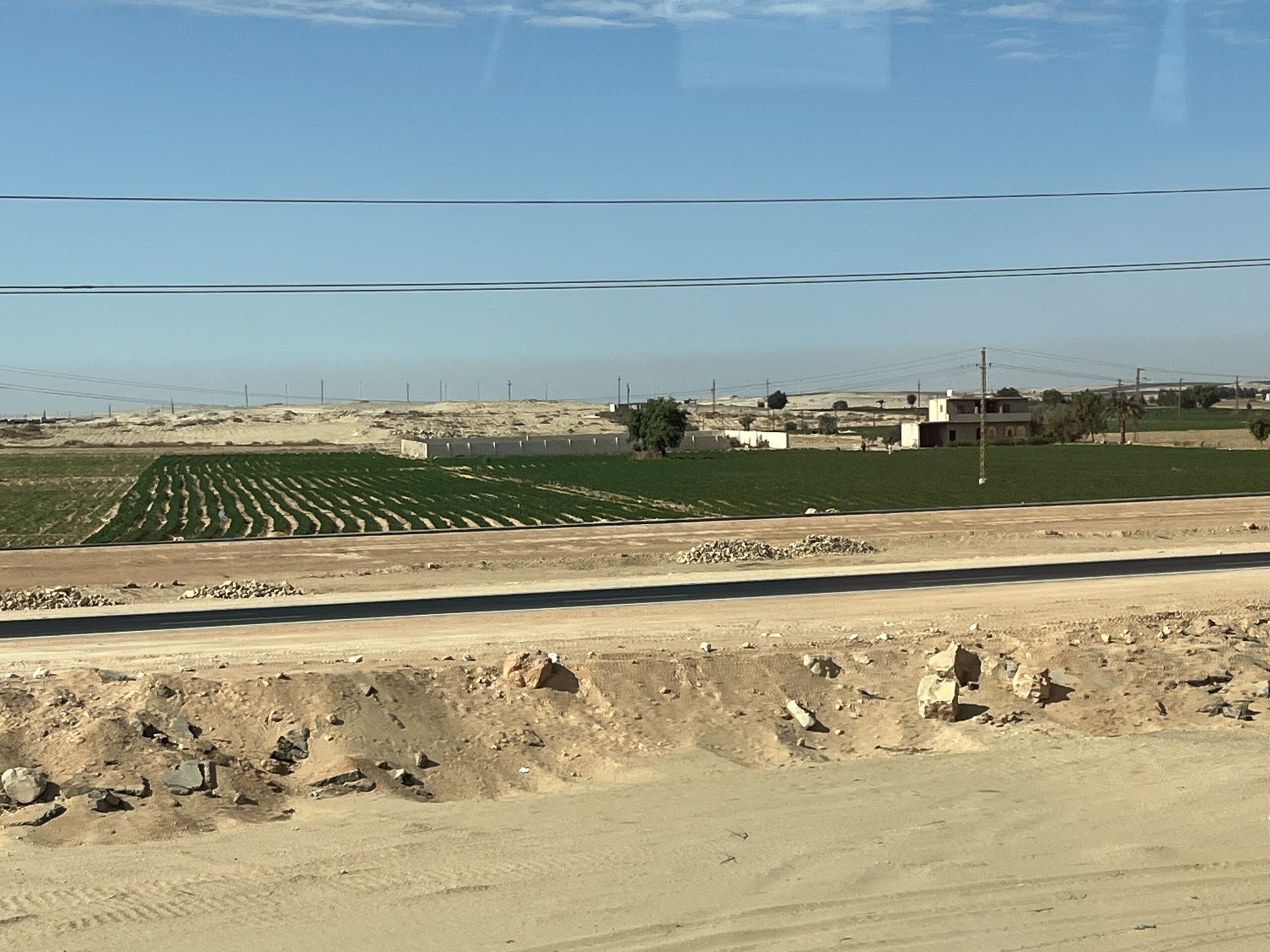 We departed under cloudy skies accompanied by a full contingent of police escorts. (Our return from Hammamiya the night before warranted the full lights-and-sirens treatment. I felt very inconspicuous.) We traveled down the corniche and onto the western desert road.