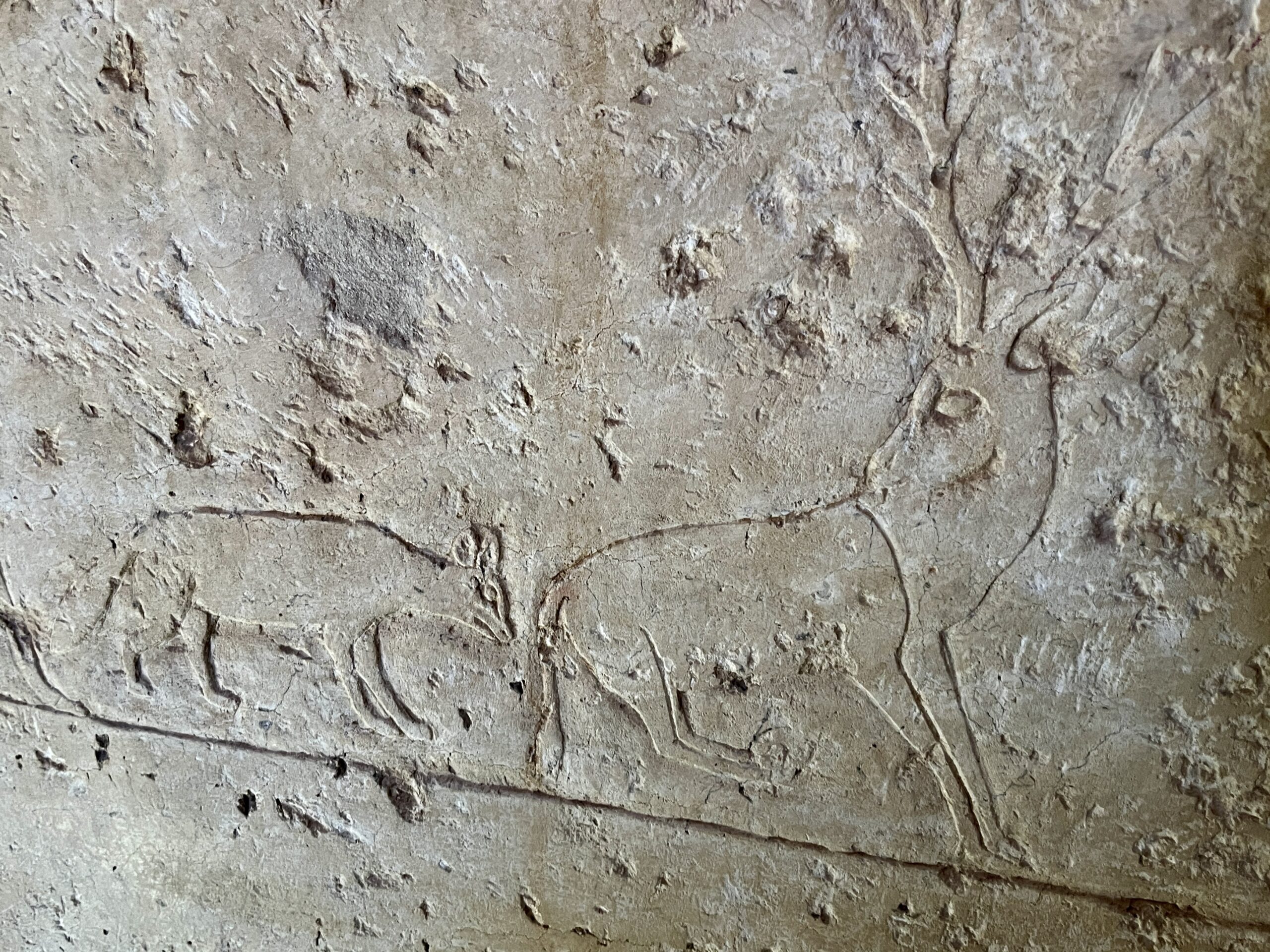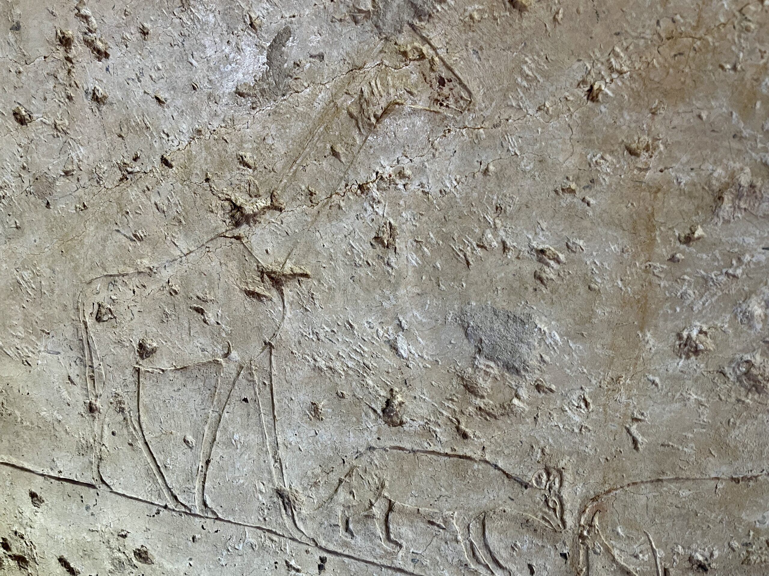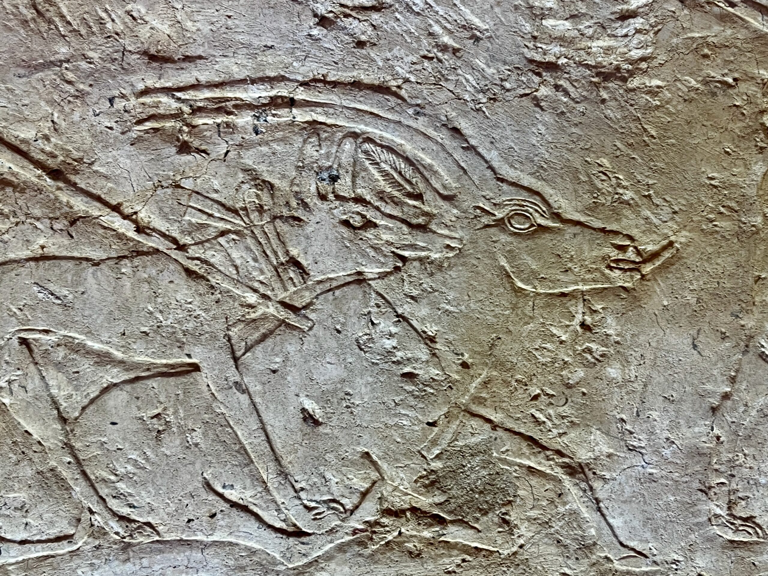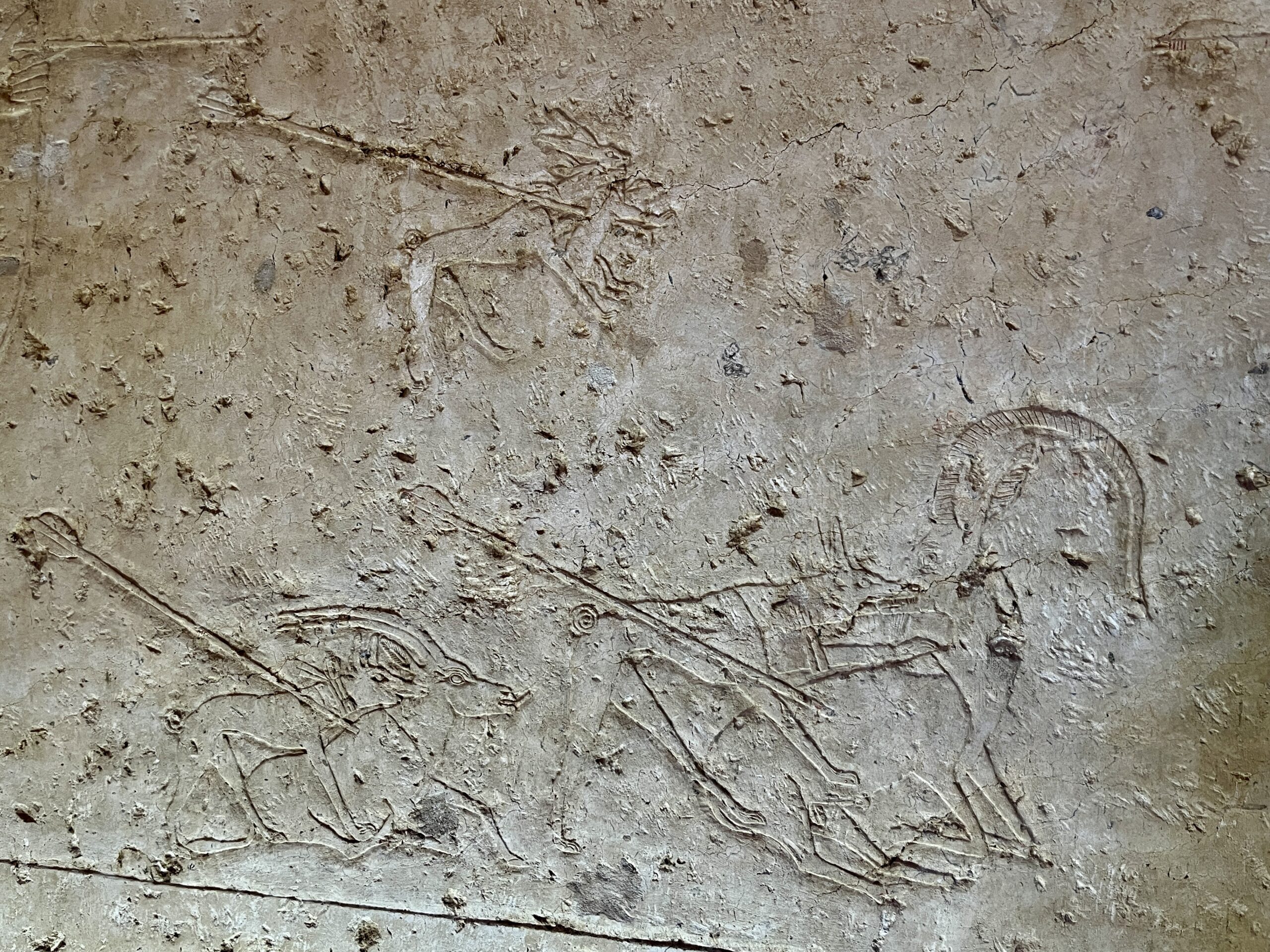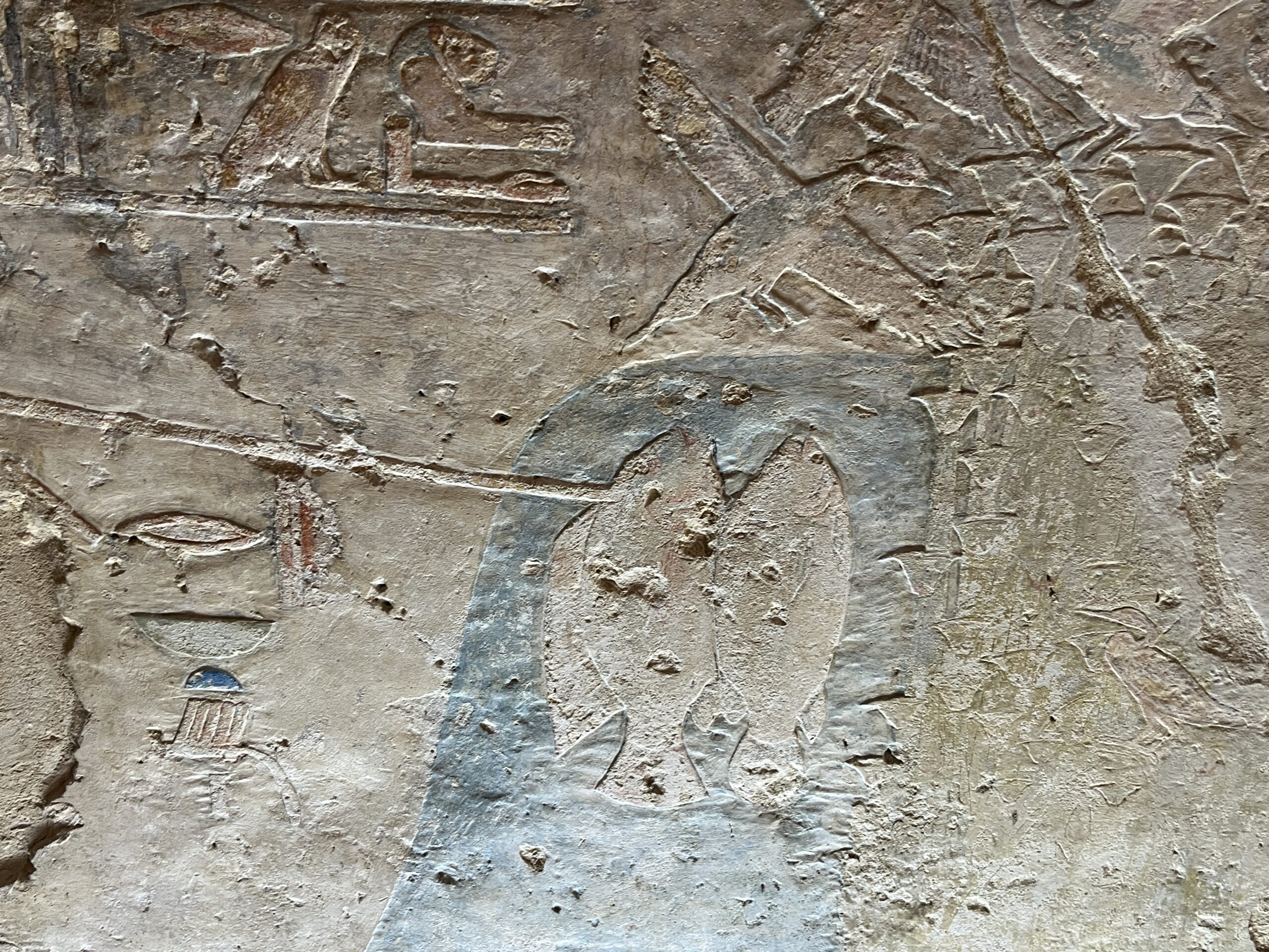 The chapel walls are decorated with both paintings and low reliefs. One wall closely mirrors the “fishing in the marshes” scene from the mastaba of Mereruka, including a crocodile lurking below the papyrus boat and species-specific images of Nile fish.