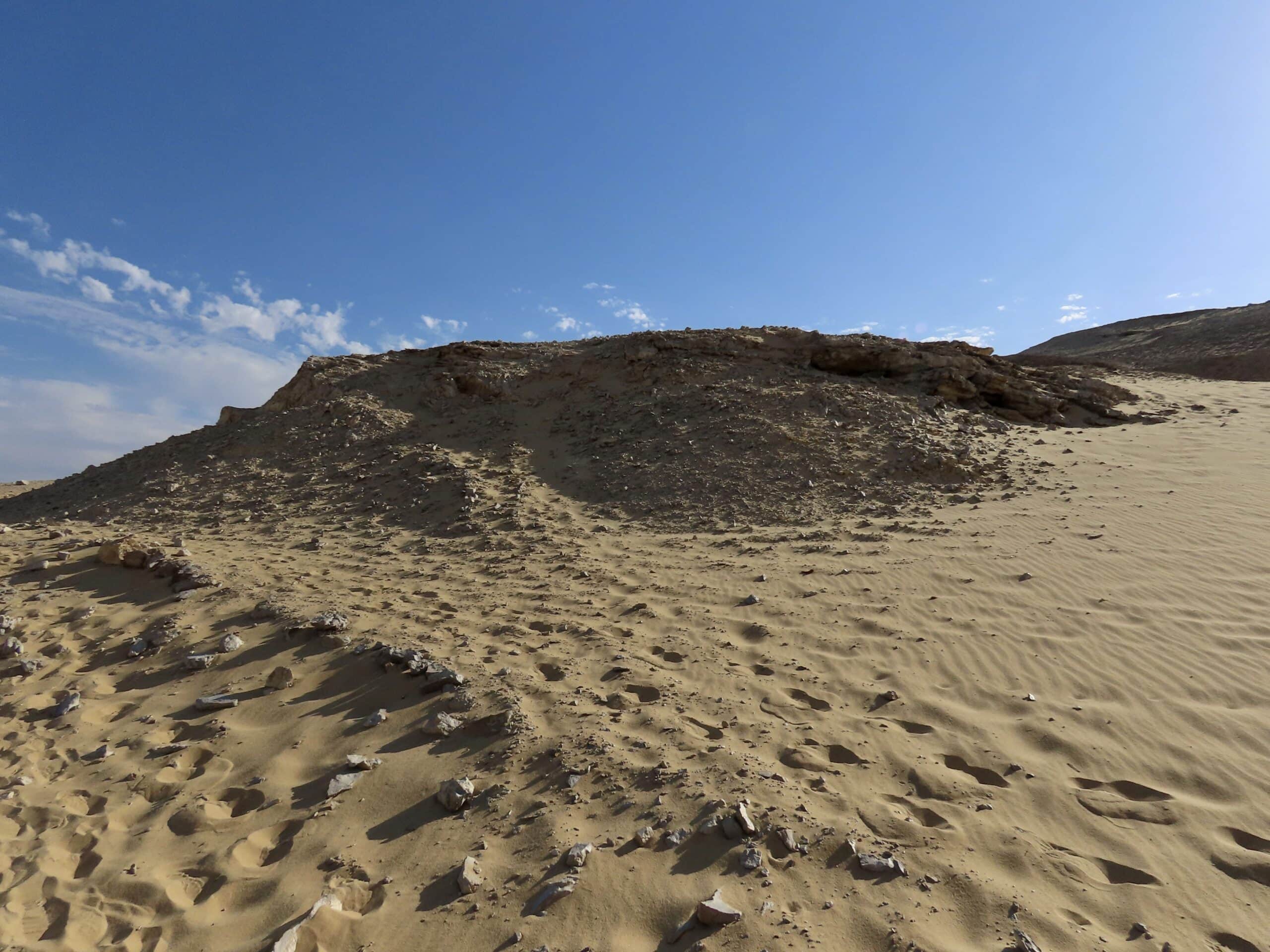 The Old Kingdom/6th dynasty tombs are located on the other side of the cemetery, across the wadi. So we took a hike across the sandy hills.