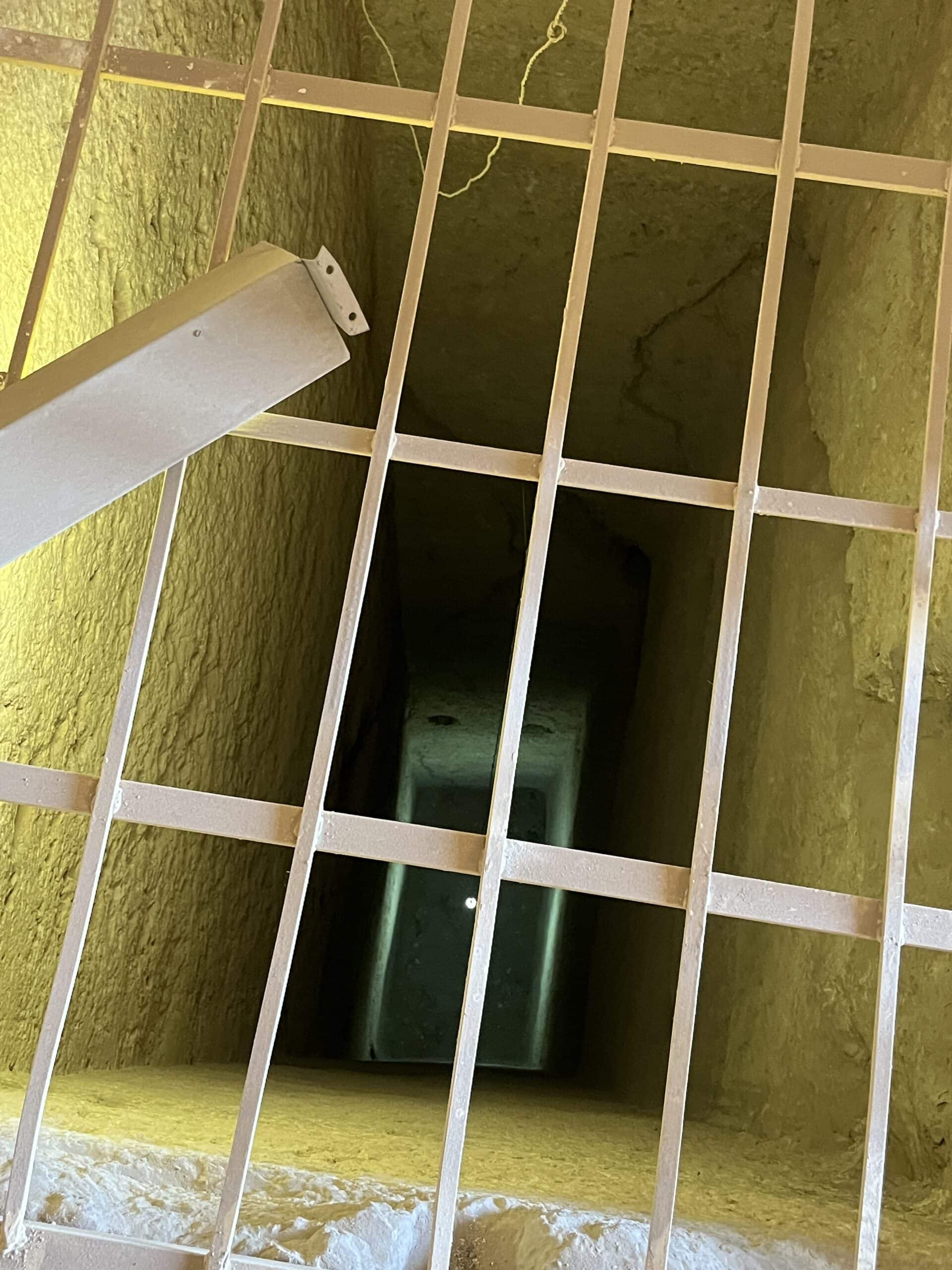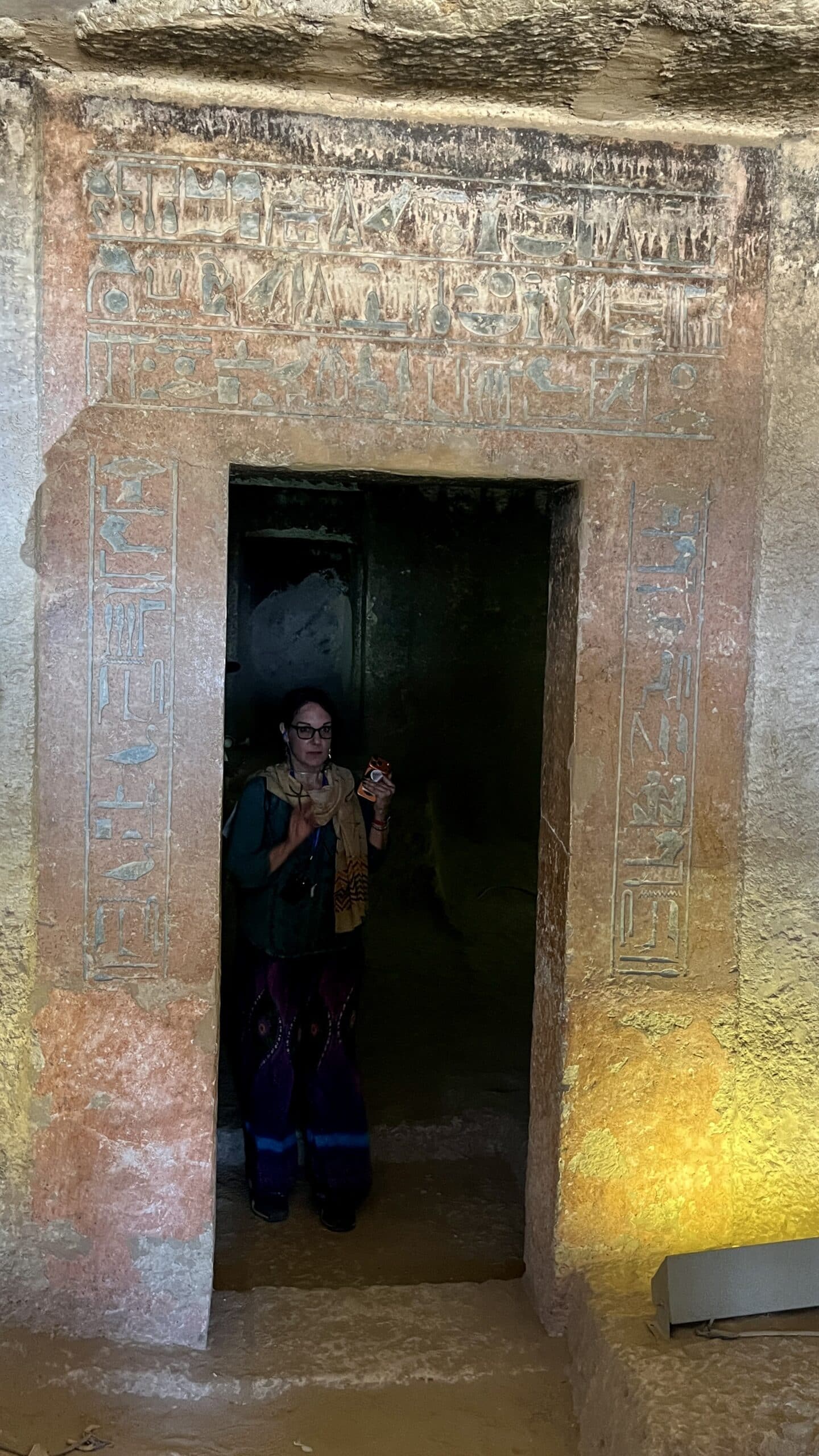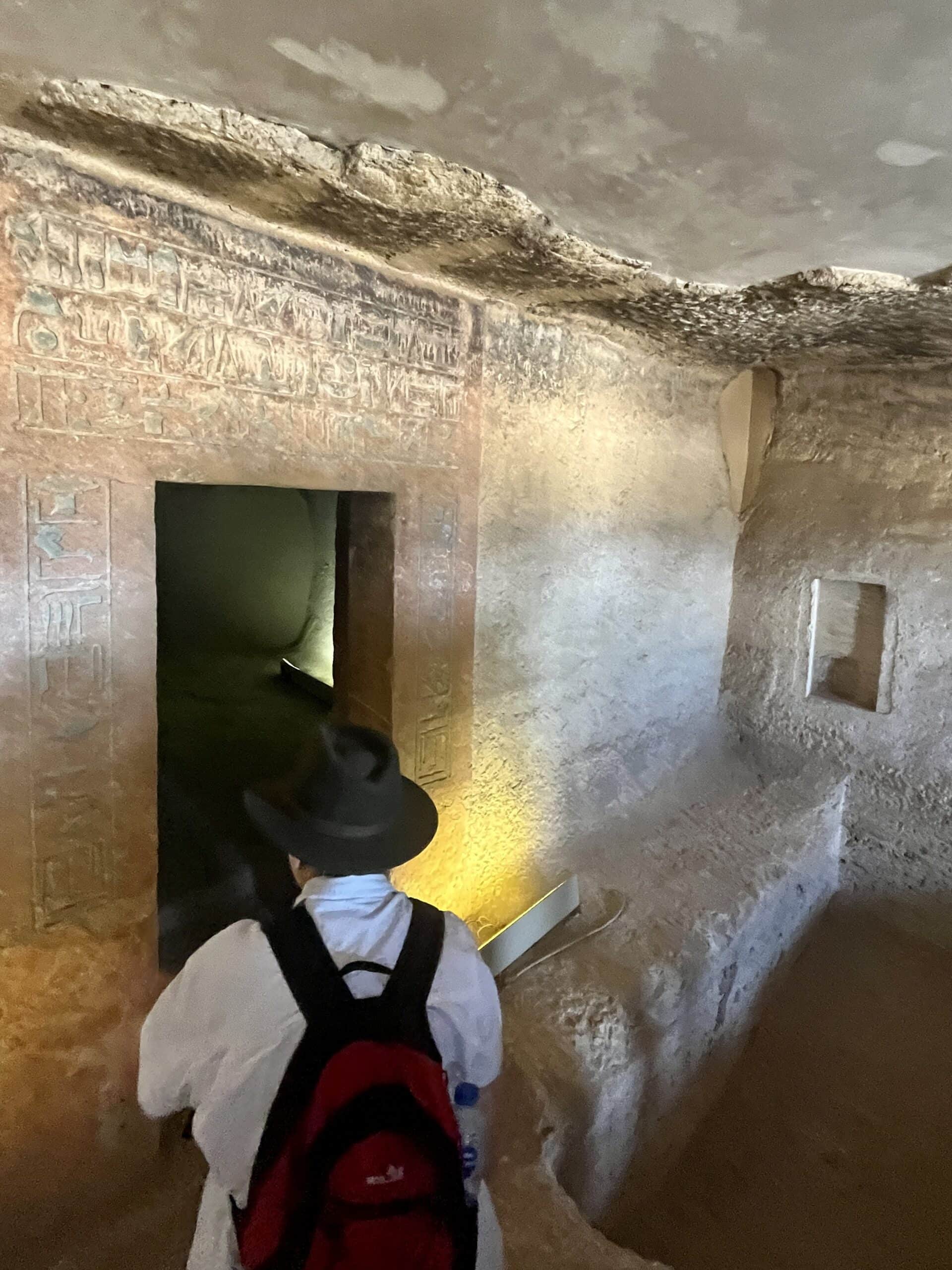 Here’s the ever-intrepid Katherine exploring the tunnel that connects to the burial chamber of Pepy-ankh-kem (Room D in the plan view).
