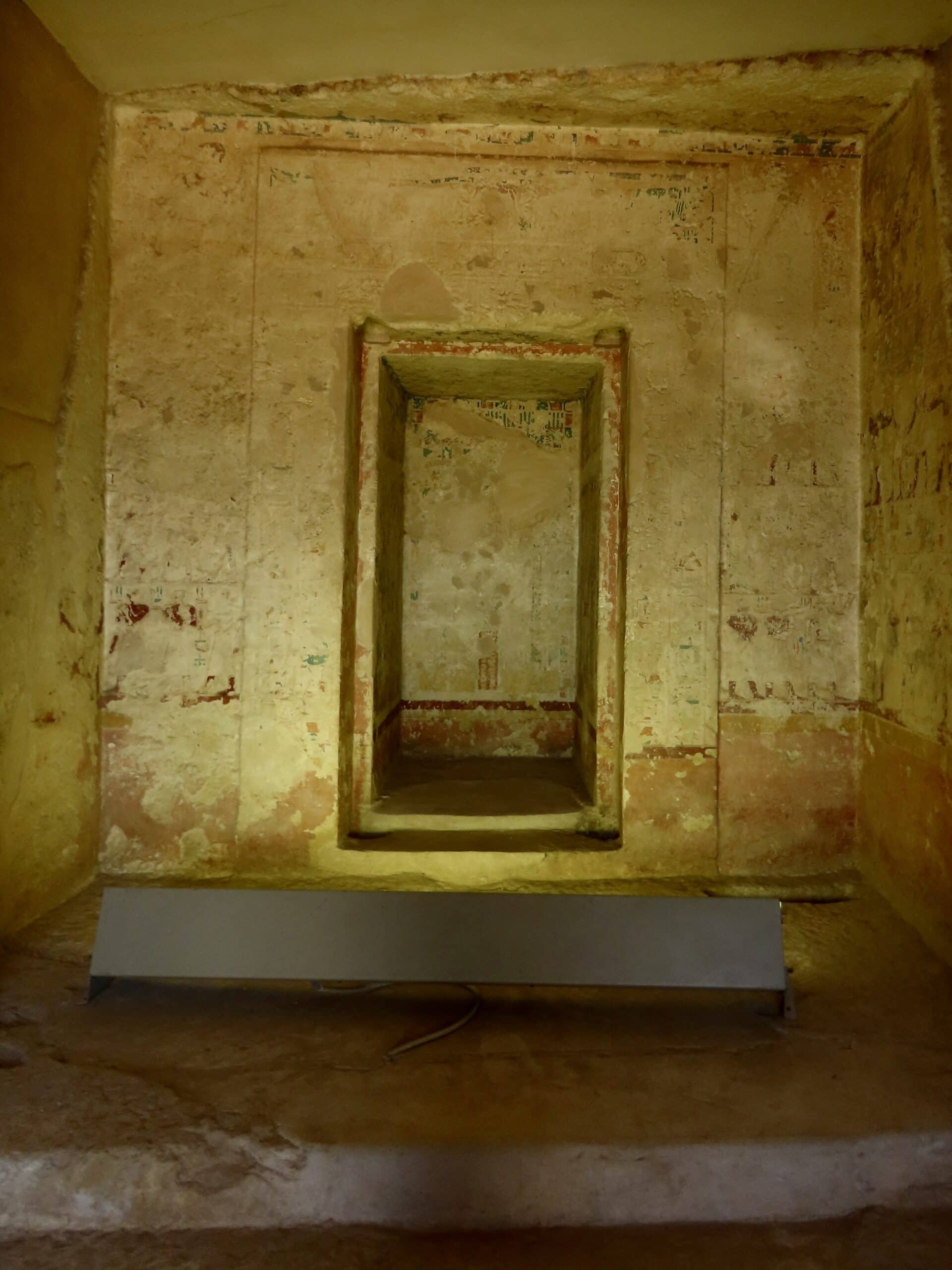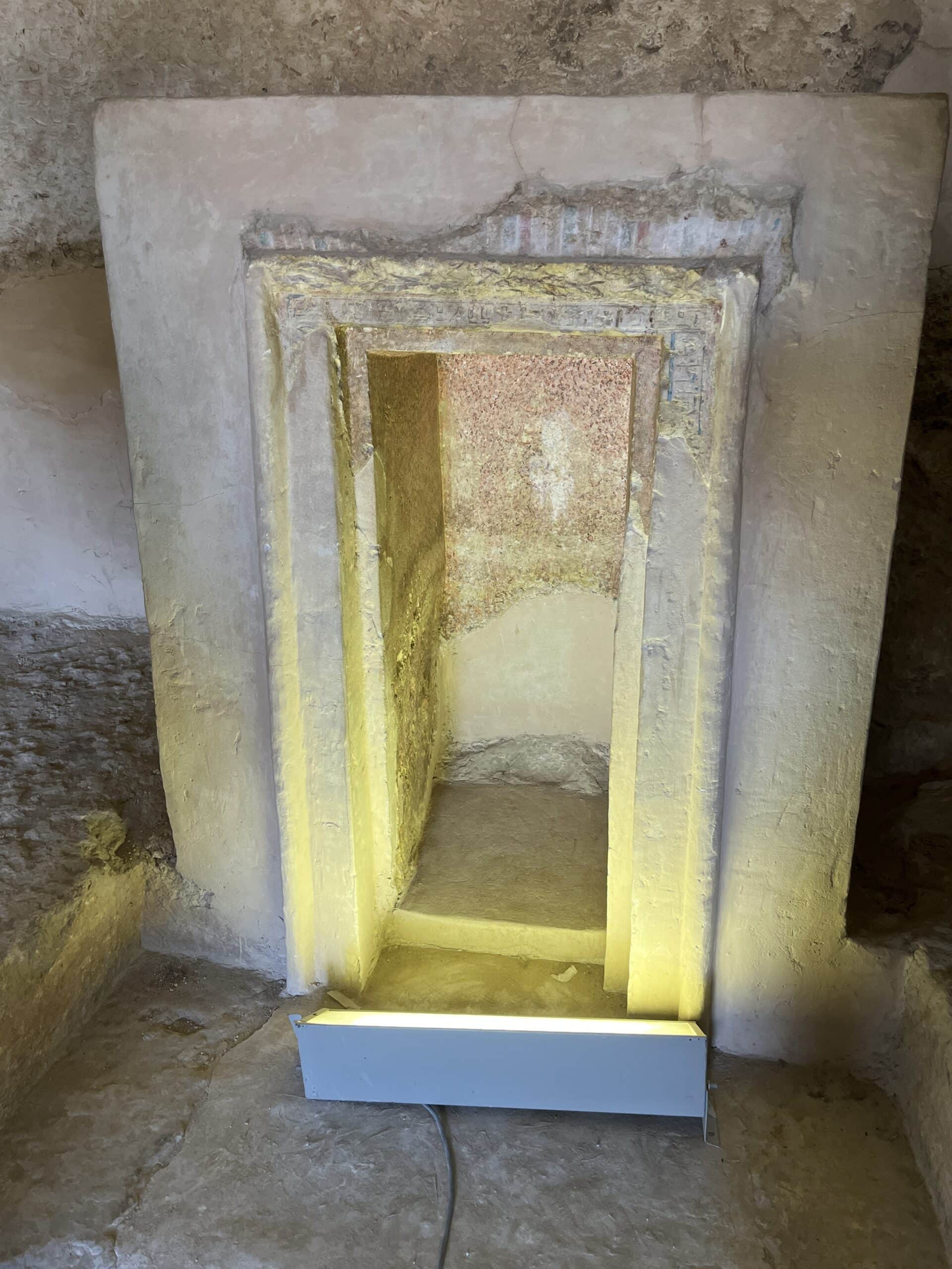 Below is the richly decorated niche where a statue of the owner would have stood, ready to receive offerings and prayers from family members and retainers.