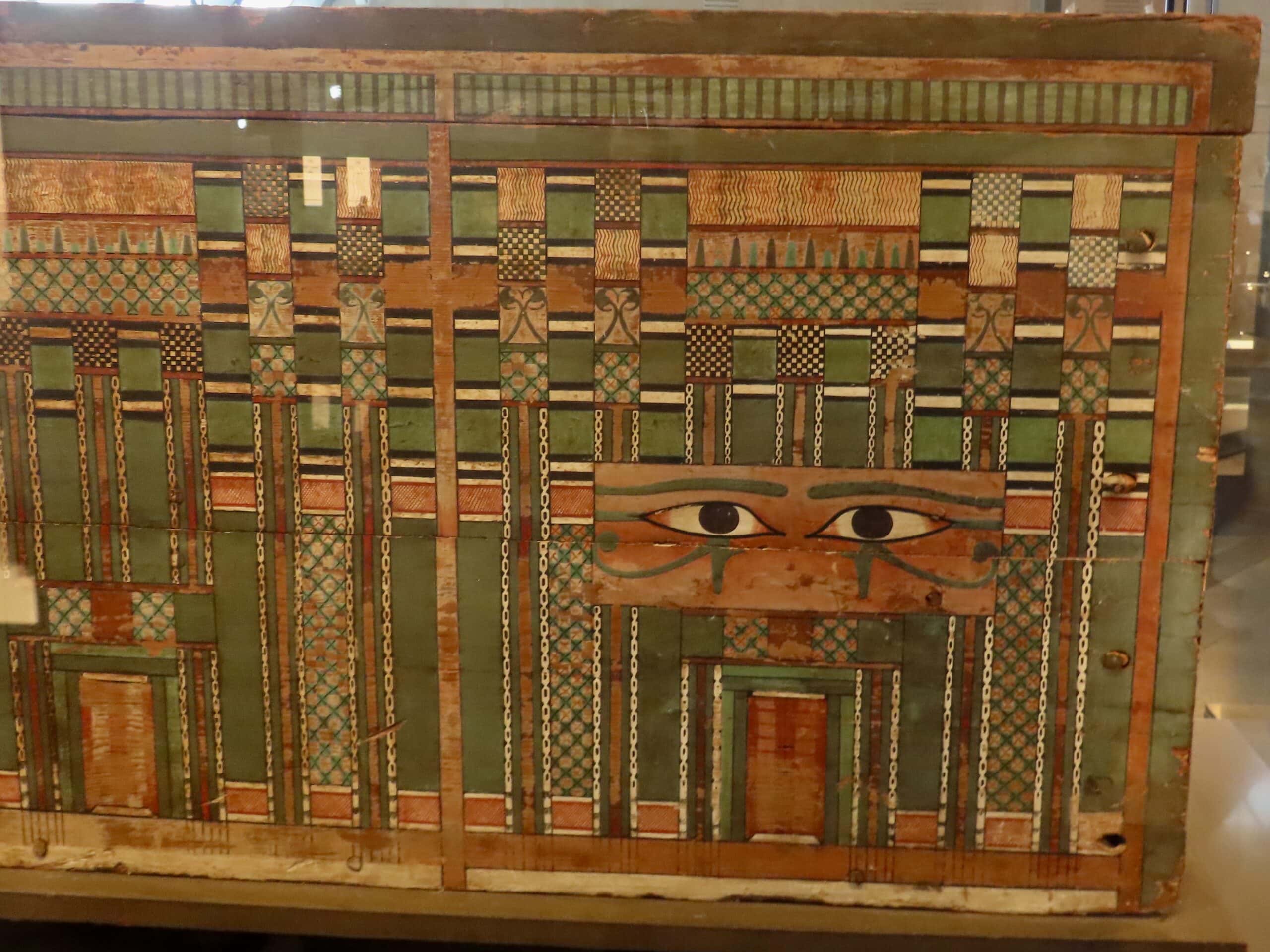 Senebi’s wooden coffin is displayed in the Grand Egyptian Museum and it is a gorgeous creation. Note those penetrating eyes above the false door, providing Senebi with a view into the living world, and the means to travel back and forth.