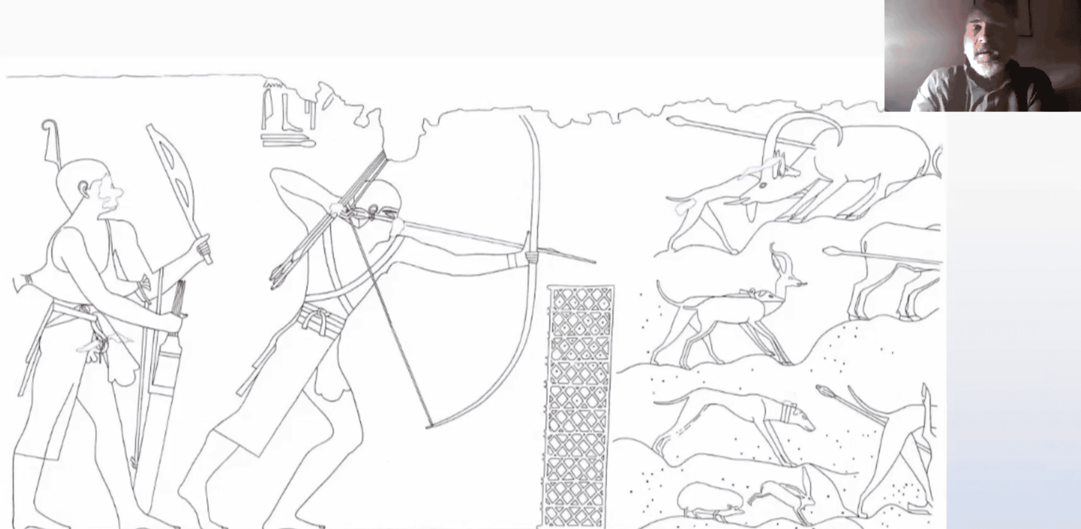 The east side of the south wall contains hunting scenes, with Ukhotep standing in the traditional upright posture while shooting. The desert was seen as a place of chaos, and hunting scenes like these, where desert animals are overpowered (often viciously) were meant to control chaos. The variety of animals illustrates the diversity of wildlife still surviving in and around the Nile Valley in the early centuries of the 2nd millennium BCE.