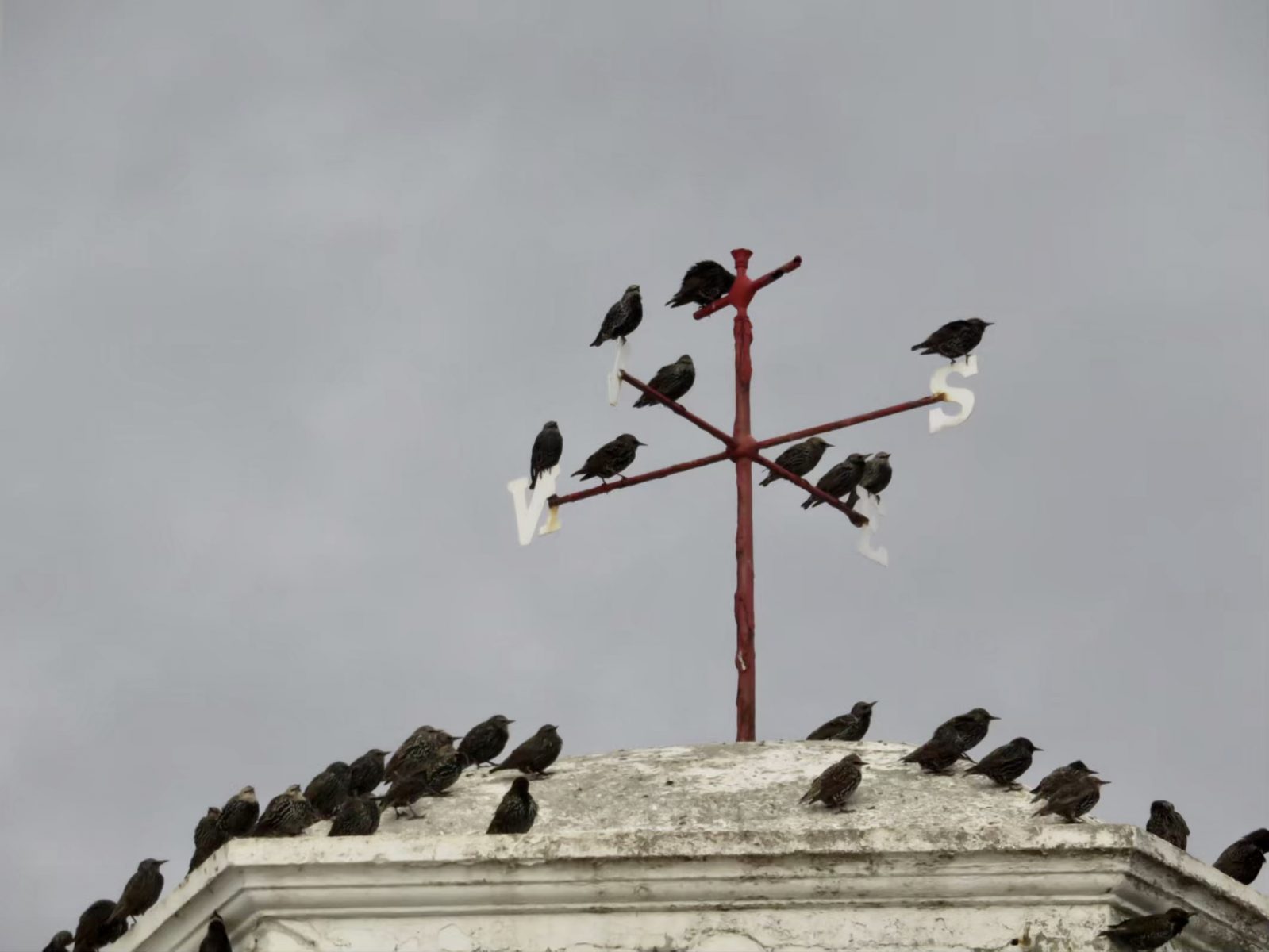 Farmers harrowing fields, seagulls swarming behind to pick at the fresh-turned earth.