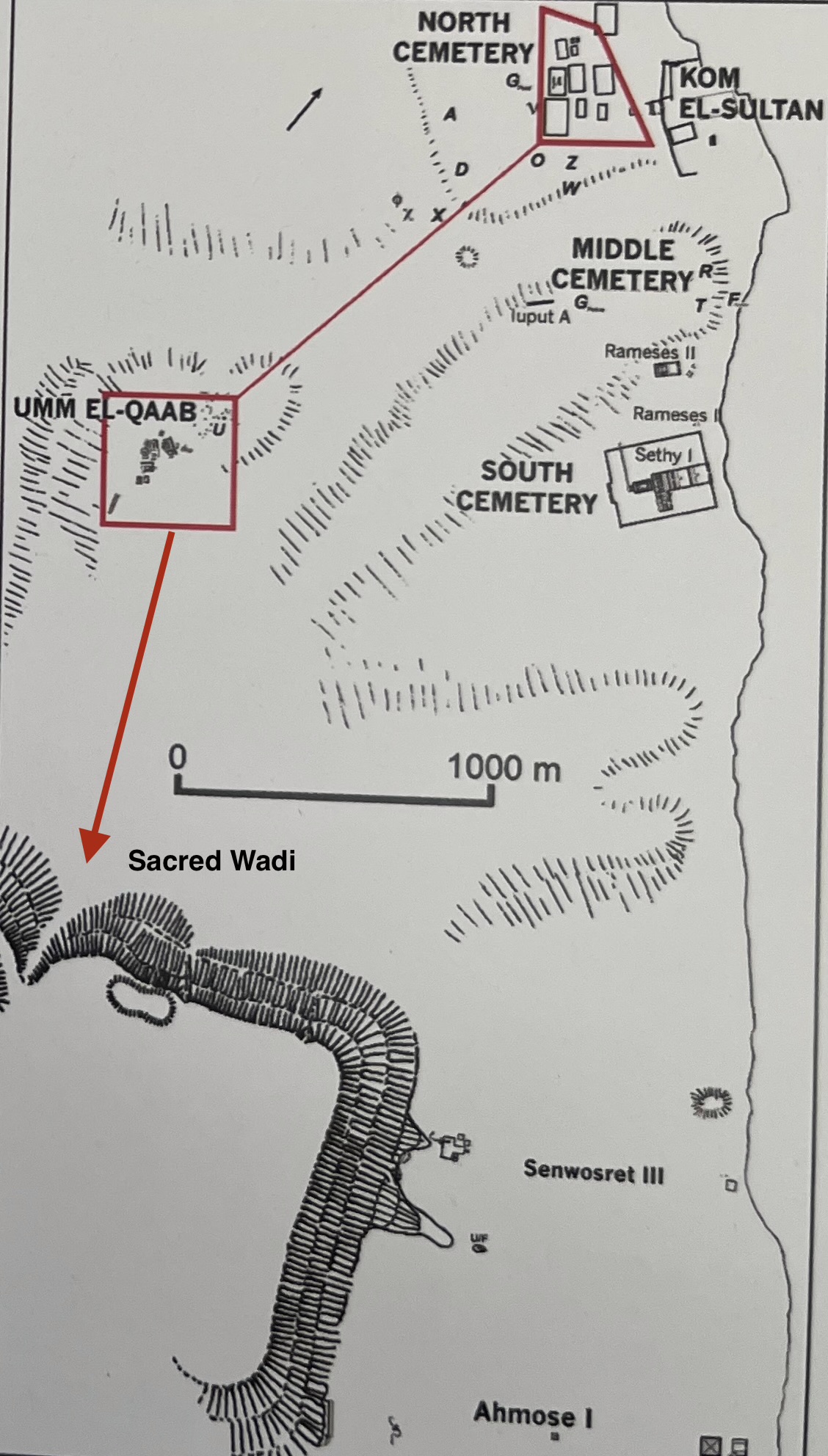 We followed the path of these ancient worshipers from the Middle Cemetery to the Umm el-Qa-ab (or as close to the Umm el-Qa’ab as the Ministry of Antiquities allows).