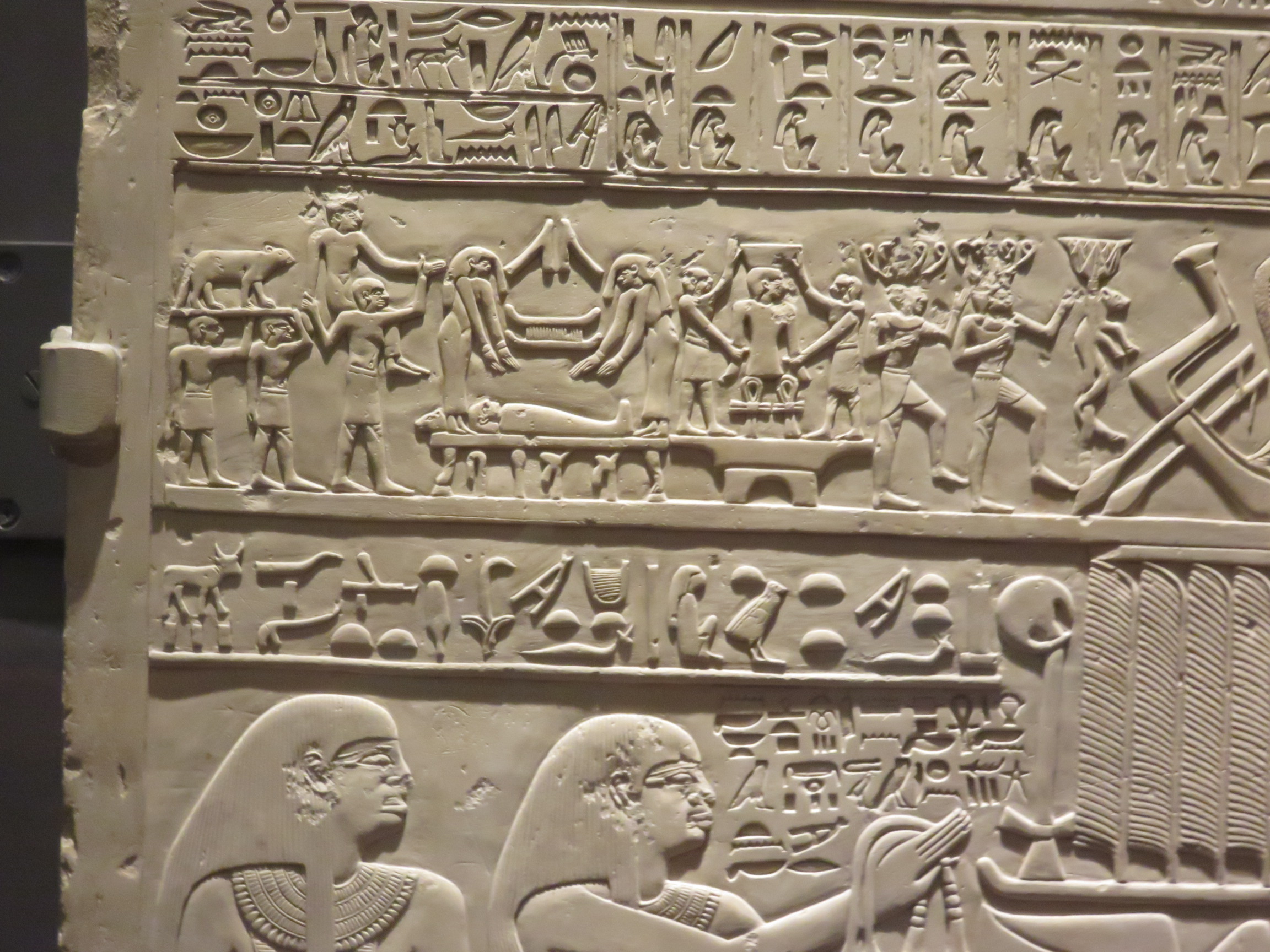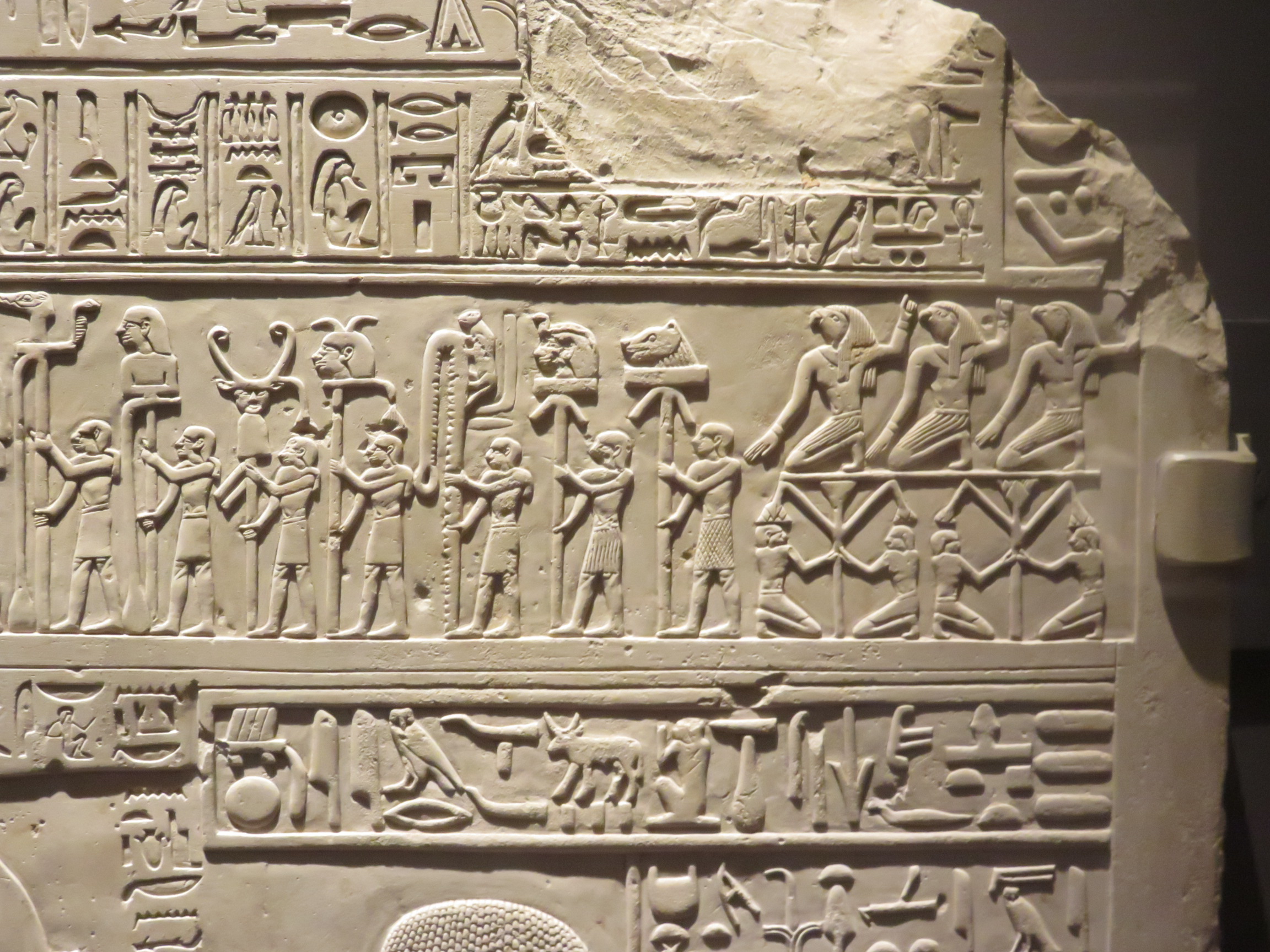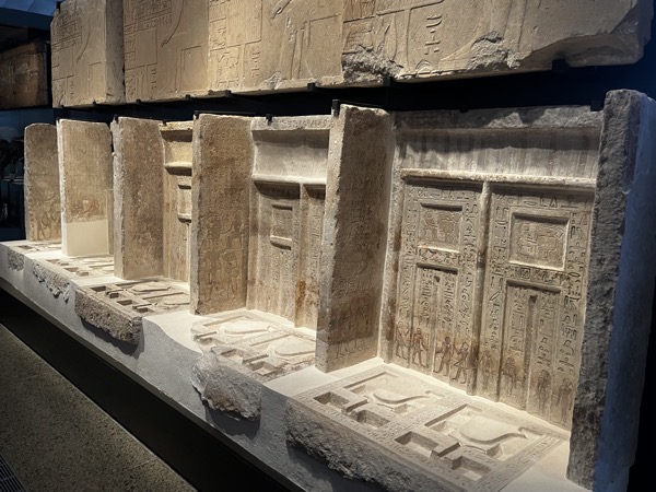 Those who couldn’t afford a shrine erected stelae, large stone tablets inscribed with magical spells and offerings to preserve their identity and sustain them in the afterlife. Thousands of such stelae have been recovered – this collection is in the GEM.