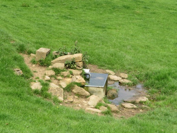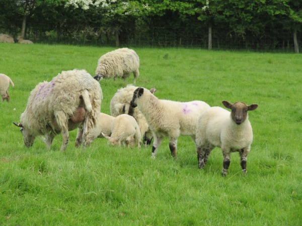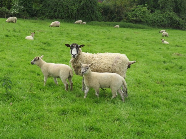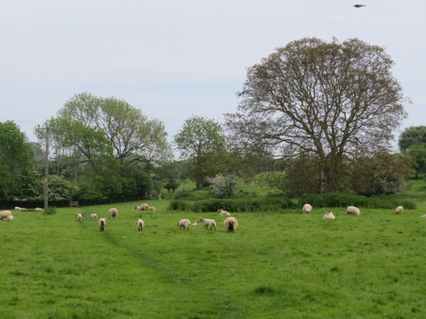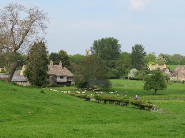 This walk began on the Cotswold Way, accessed across the street from St. Michael’s and All Angels Church on the south end of Broadway. After crossing Snowshill Road, the path heads southwest through meadows filled with munching woolies.