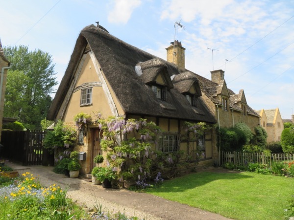 Buckland and Laverton are part of the same civil parish, with a history dating back to Saxon times. “Buckland” derives from the Anglo-Saxon “Boc-land” reflecting its origins in a charter granted to St. Peter’s Abbey, Gloucester, in 709 CE by Coenred, the king of Mercia. (Coenred then relinquished his crown, went on pilgrimage to Rome and lived there as a monk until his death – a popular retirement option at the time.) The abbey owned the village until 1546, when Henry VIII’s dissolution placed the estate in private hands (for a handsome fee, of course). Buckland’s houses, many dating back to the 17th century, were built for workers on the estate. but today the village seems to be the province of the very rich. The manor house, built in 1750, is now a luxury hotel.