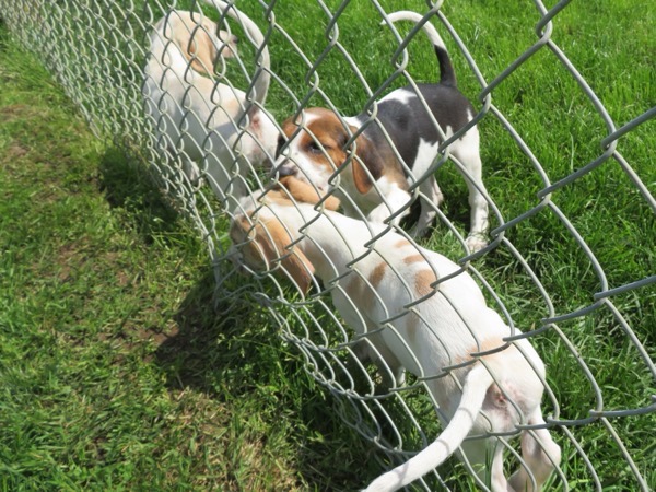Coming into Broadway from the south, we passed a fox hound kennel with some cuties too young for leads.