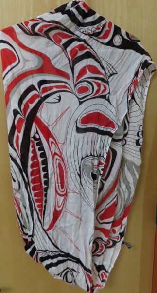 I brought home this gorgeous circle scarf, “Honouring the Salmon: Determined to be strong and reach our goals.”