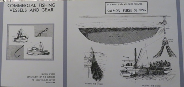 Nets used to commercially fish different varieties of salmon in this basin. First, a purse sein, which encircles the fish.