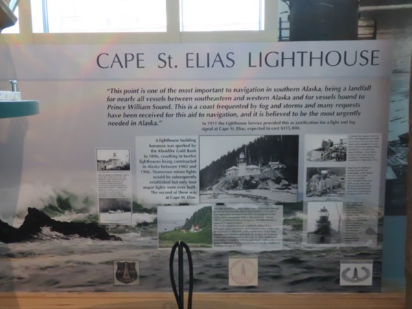 A lens from the Cape Elias Lighthouse. Lighthouses in this area were short and stubby because visibility is limited: mountains rise steeply on all sides of the water and their are a lot of low-hanging clouds. Almost all lighthouses are decomissioned today, having been replaced by on-board navigationa systems. This lighthouse, located on a remote island 60+ miles from Cordova, is still operating with an automated system. The boathouse is available as a vacation rental.