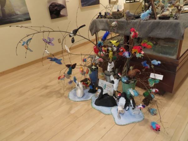We exited through the museum’s delightful art gallery-cum-gift shop. First up was a marvelous display of Copper River birdlife made by Cordova kids from fabrics and yarn.