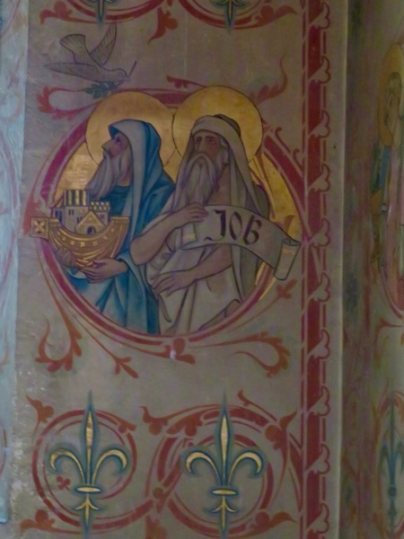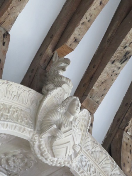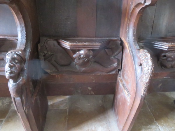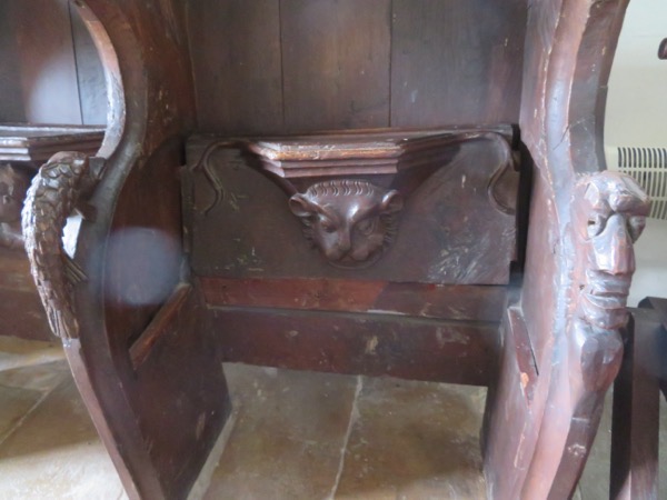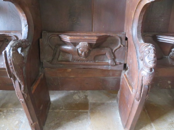 These four medieval misericords were “liberated” from the nearby Burford priory during Henry VIII’s dissolution of the monasteries. When services are long, the seats in misericords, (a.k.a. “mercy seats”) have little shelves on which one can perch one’s bum to relieve strain on the legs.