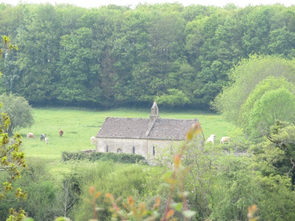 From the copse, we worked our way downhill to join a lane past Paine’s Farm, which borders the present Mitford family estate. Then we took a jog southwest through a mowed field to reach Dean’s Bottom and St. Oswald’s Church Widford – which seems to be a main access to the church.