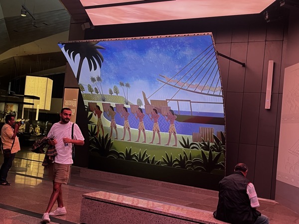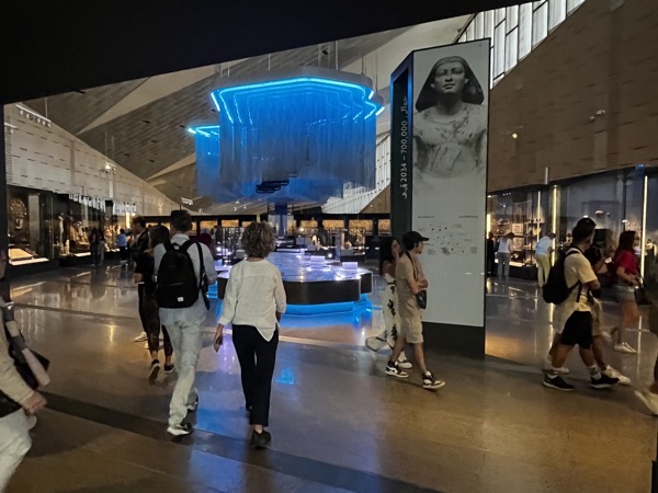 The completion date for this gigantic edifice has been pushed back again and again and again. There have been a multiple announcements that the Grand Opening would be “next year” and a couple of soft openings over the last couple of years to test visitor management and security systems – a wise approach IMO. The Grand Hall (featuring all the essentials: gift shops and a food court) and the ~80′ high Grand Staircase have been open for about 18 months. The galleries housing Tutankhamen’s glories and the new museum housing both of Khufu’s Solar Boats are not yet open. But in October, just a couple of weeks before my visit, the museum’s 12 main galleries opened for this trial run. Lucky me!