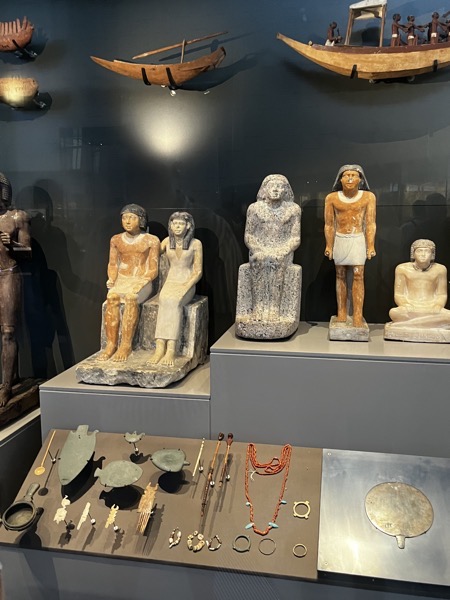 The museum advertised audio tours, which we thought were the self-guided kind you find in many museums today. Moshira and I purchased the earphones only to discover that they were for guided tours, offered in many languages, but led by a live person. So we dutifully trooped along after our English-speaking guide for ~ 1.5 hours, up the Grand Staircase and through the main galleries. I thought the tour was very well constructed, providing visitors with a solid overview of ancient Egyptian life over three millennia, while winding through the museum’s enormous collection of thousands of artifacts. I popped back for a second dash through the galleries after the tour ended.