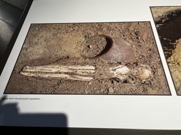 I was thrilled to see artifacts from my favorite site, Hierakonpolis/Nekhen (south of Edfu). Tomb 72 appears to be the resting place of a powerful ruler c. 3600 BCE. His tomb suffered what appears to be deliberate damage, followed by deliberate restoration, in the centuries preceding the unification of Egypt, when various proto-states were competing with one another for dominance. To my knowledge, the artifacts from this tomb have not been exhibited previously.