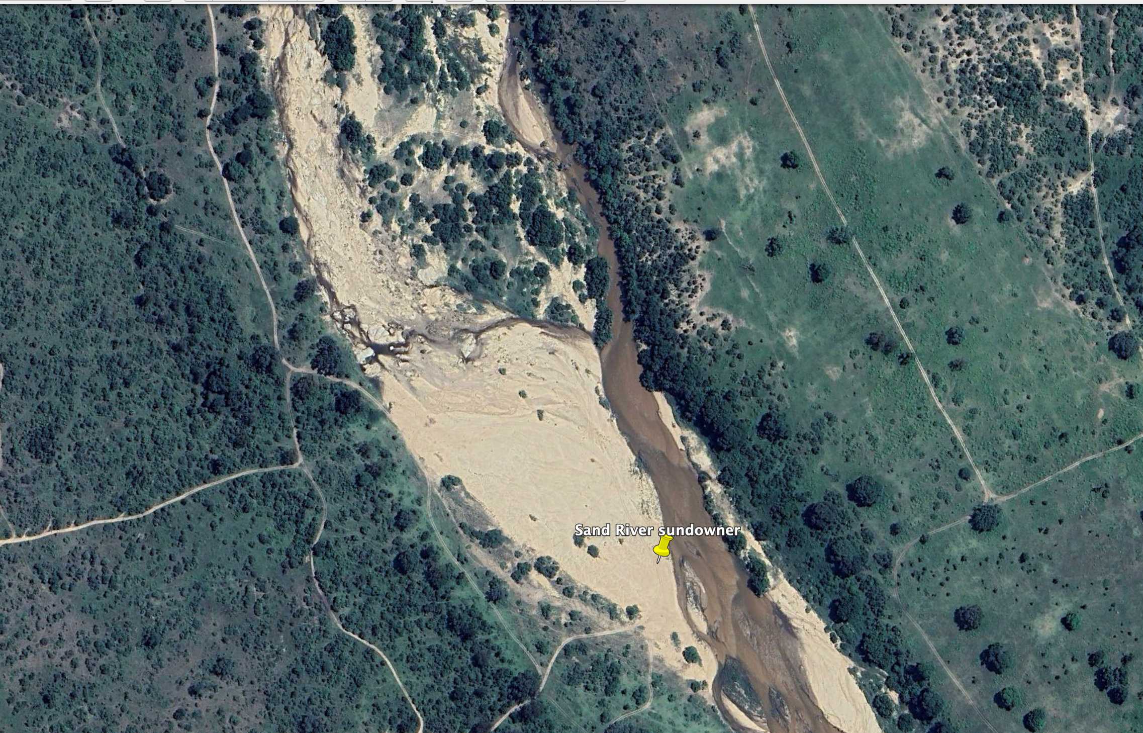 A colonial ritual that survives on safari game drives is “the sundowner.” Tracker and guide find a scenic spot to park, then haul out a table and load it up with glasses, beverages and snacks. (Because we haven’t had enough to eat yet today.)  This evening’s sundowner was next to the Sand River.