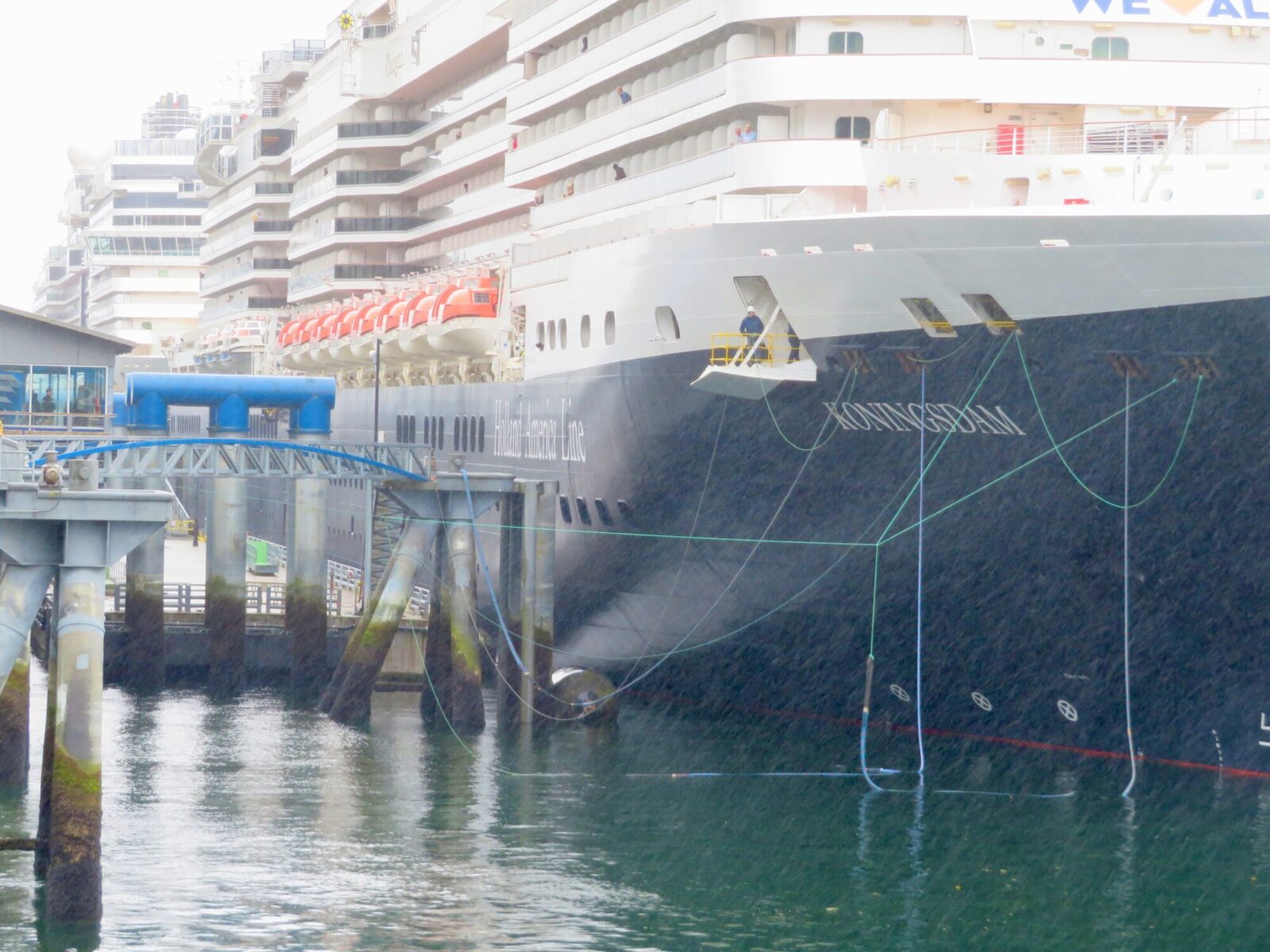 We watched with amusement as one of the massive Holland America ships edged carefully into the dock. With all of today’s high tech navigation equipment, docking still depends on five guys with ropes.