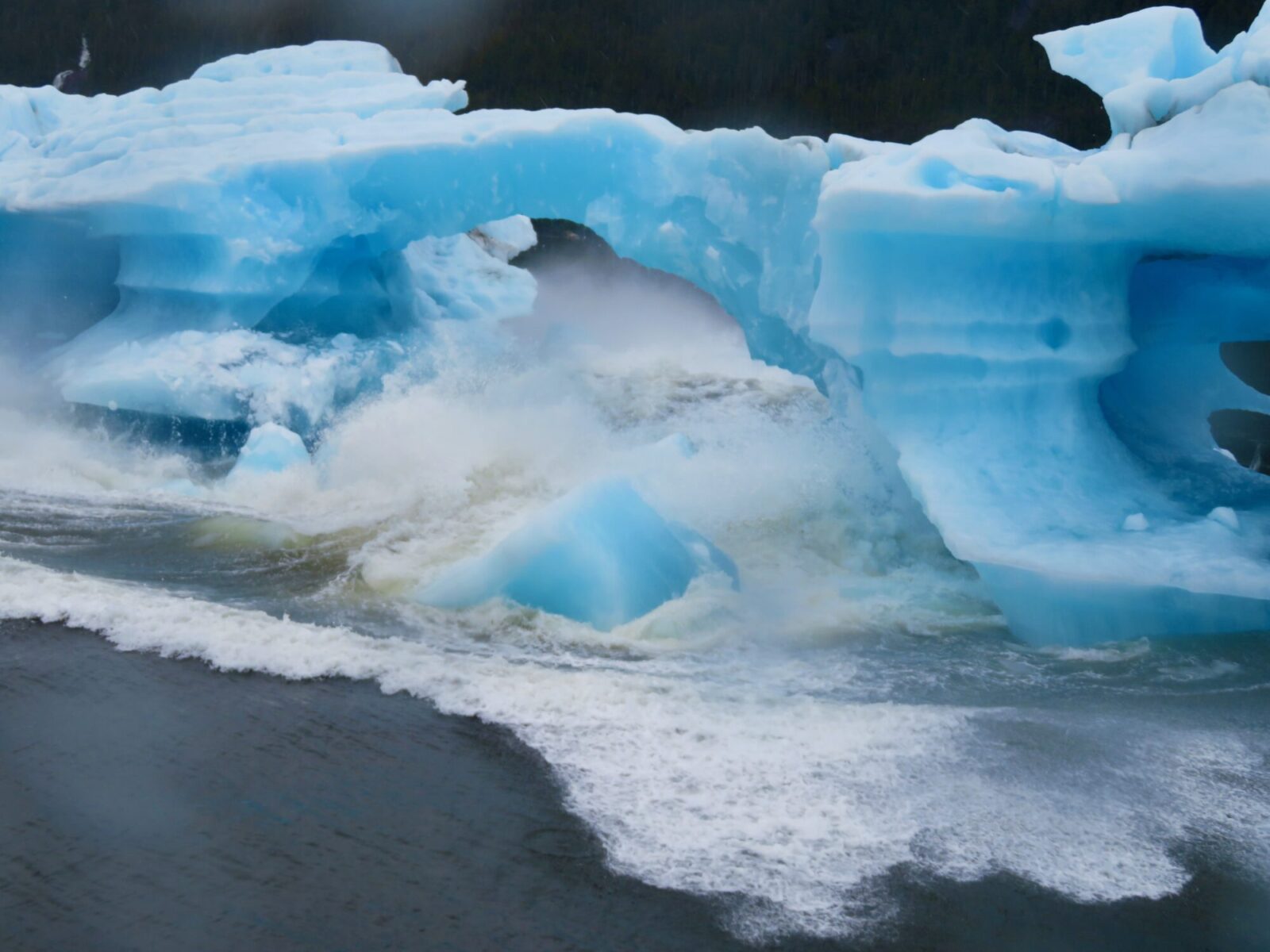 As we circled very near, the arch in the berg suddenly calved. The force of the wave hitting our ship almost knocked me off my feet.