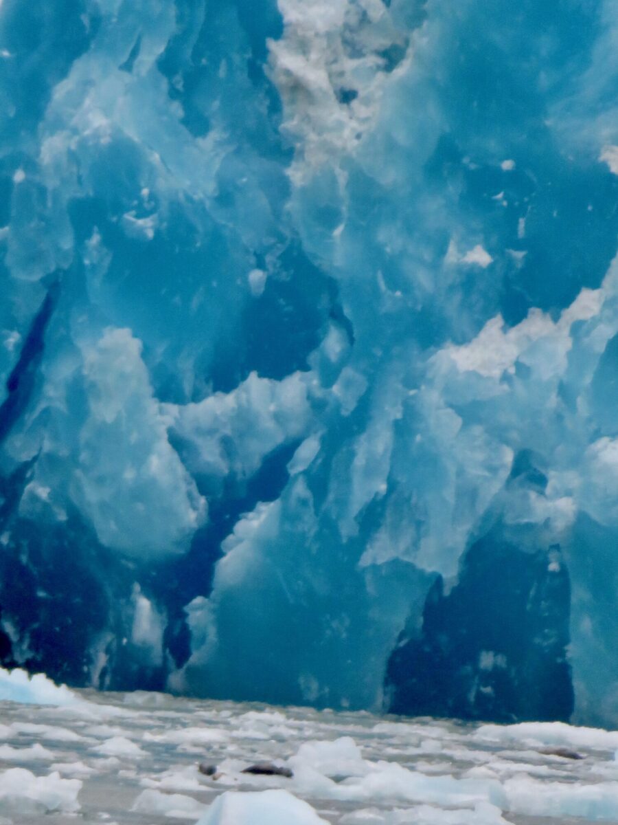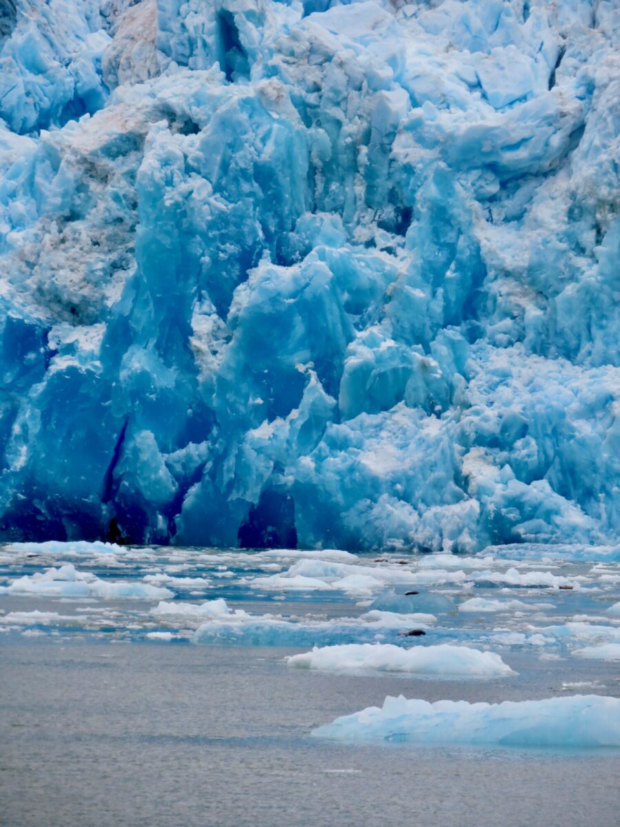 As we entered the Tracy Arm, azure blue icebergs began to appear, bobbing in the water. We spent a lot of time coasting up to and around this gorgeous natural sculpture.