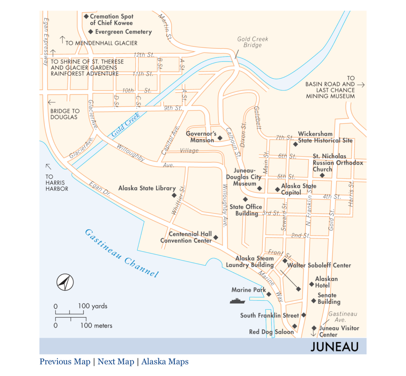 The Juneau Public Library is on the waterfront at the end of the historic district. It’s located on the top floor of a downtown parking structure and has spacious rooms and marvelous views.