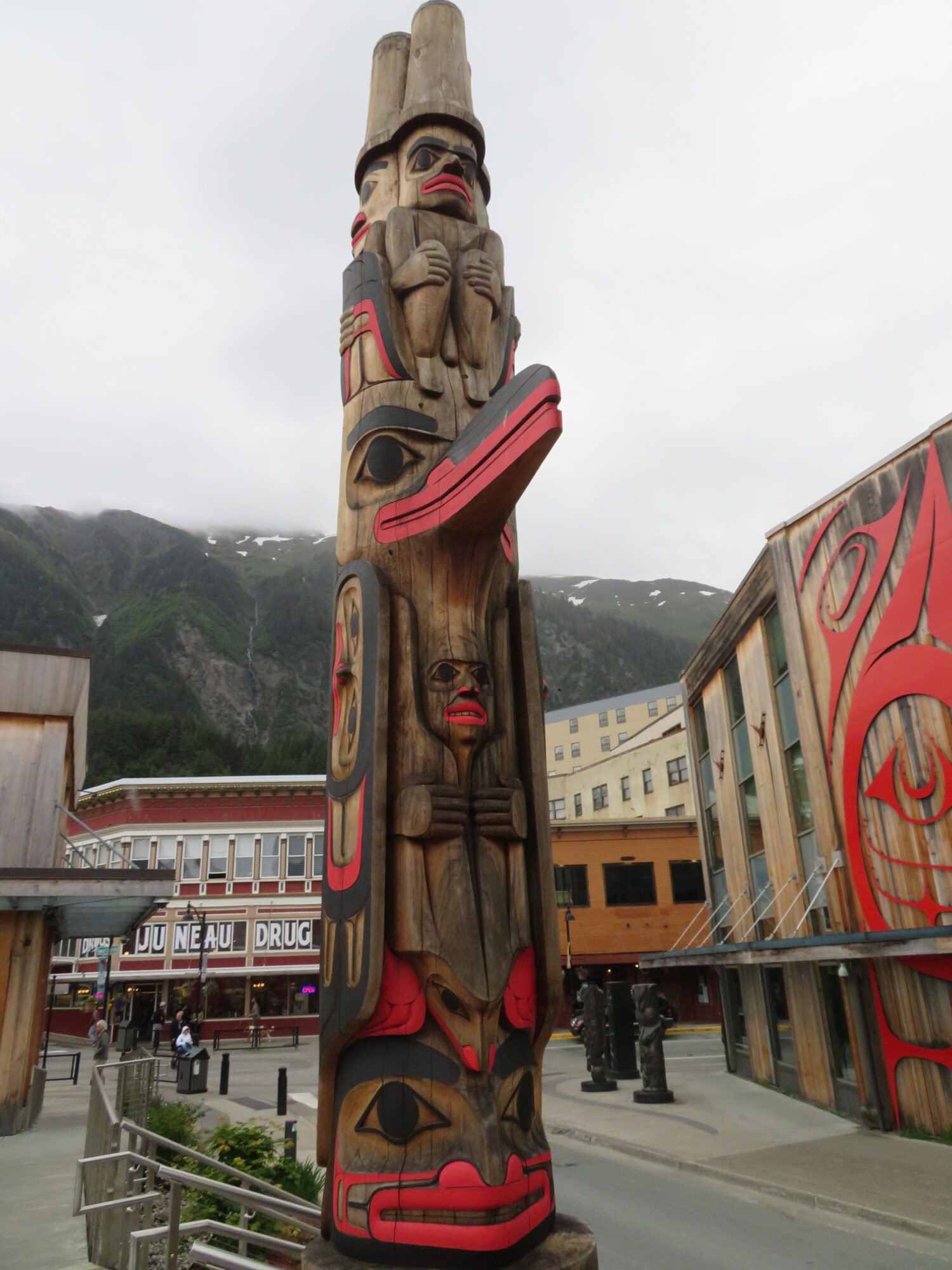 The plaza beneath the Sealaska building features intriguing masks and more totems.
