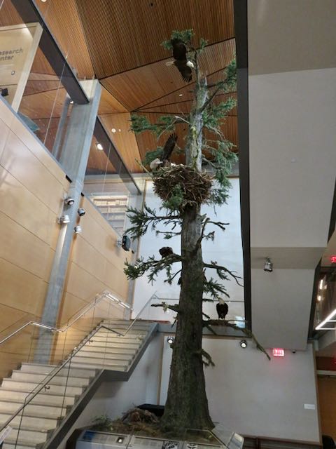 The museum’s entry features a 20+ foot bald eagle nesting tree, complete with taxidermied birds and typical neighbors.