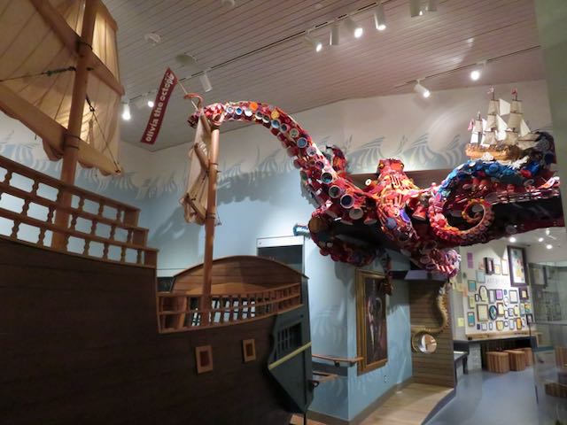 The Alaska Gallery is this museum’s main feature, with artifacts preserved from Native history, Russian occupancy, territorial history, early statehood and some contemporary works. Smaller than the museum in Anchorage, this one still holds an impressive array of Stuff – some highlights below.
