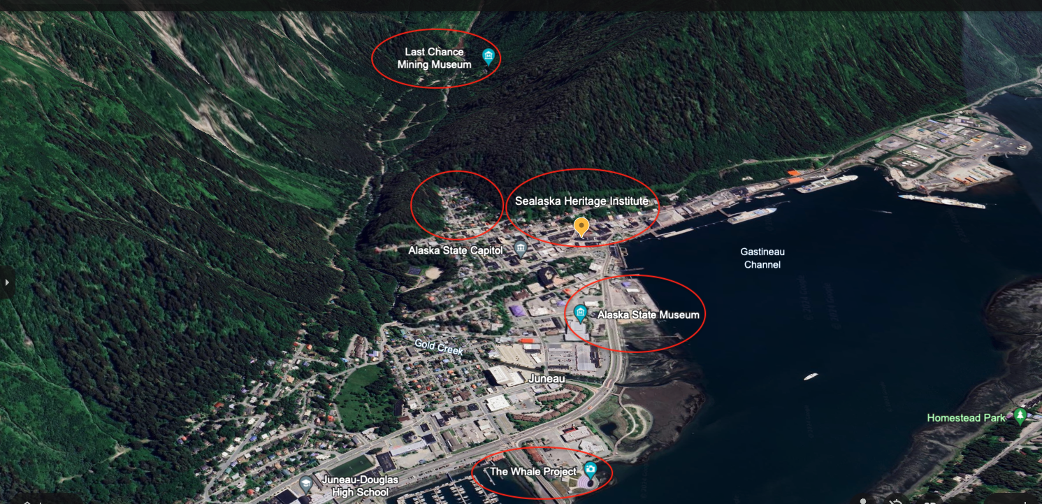 On our last full day in Juneau, we visited major landmarks and museums, did a quick auto tour of the residential area up top, and took a walk at a trailhead in the mountains above downtown.