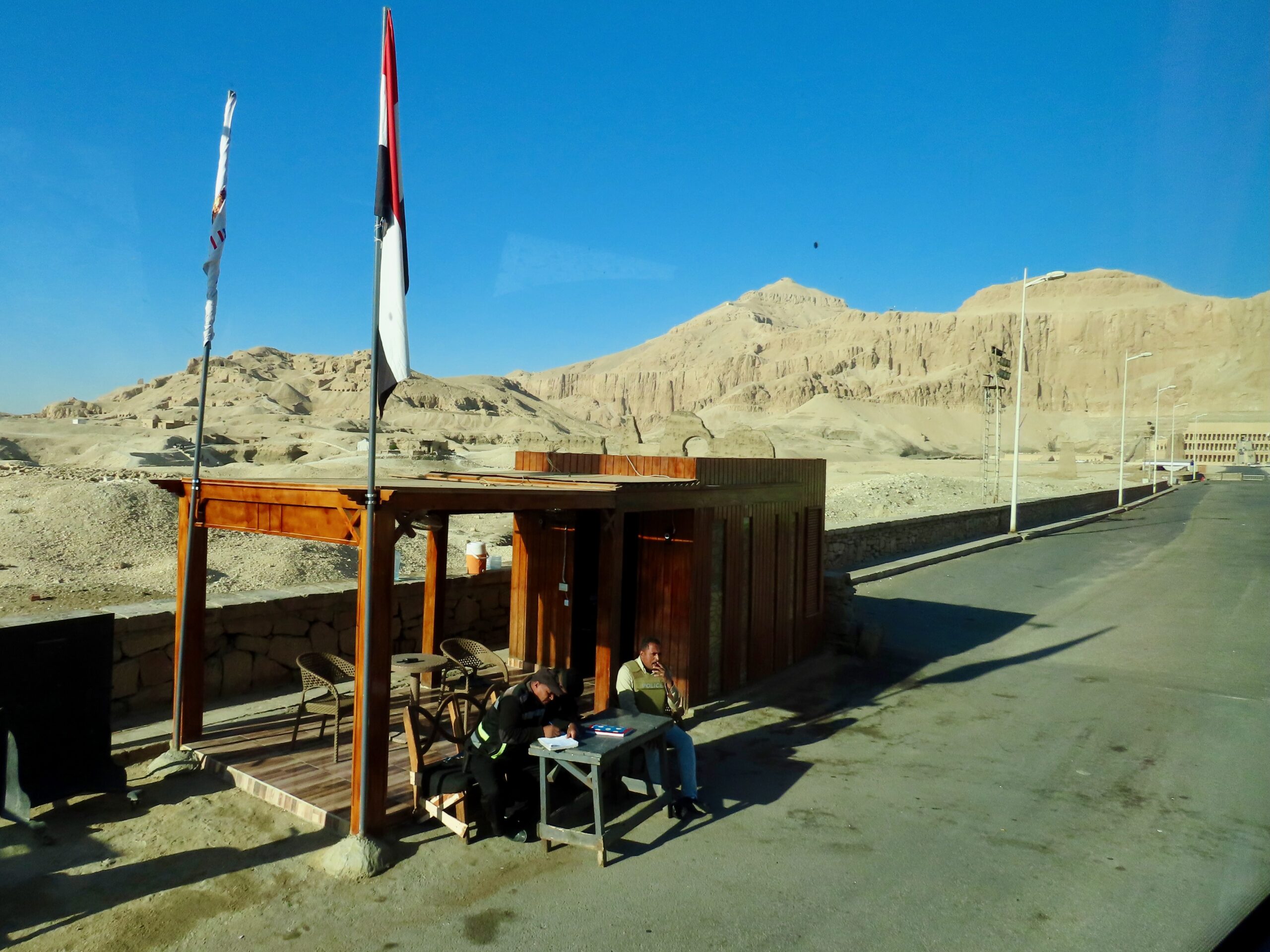 The Winter Palace is located on Luxor’s East Bank, and our morning’s destination was Deir el Bahri, on the West Bank.  We drove through the city, crossed the Nile on the northern bridge and headed southwest towards the ancient cemeteries.