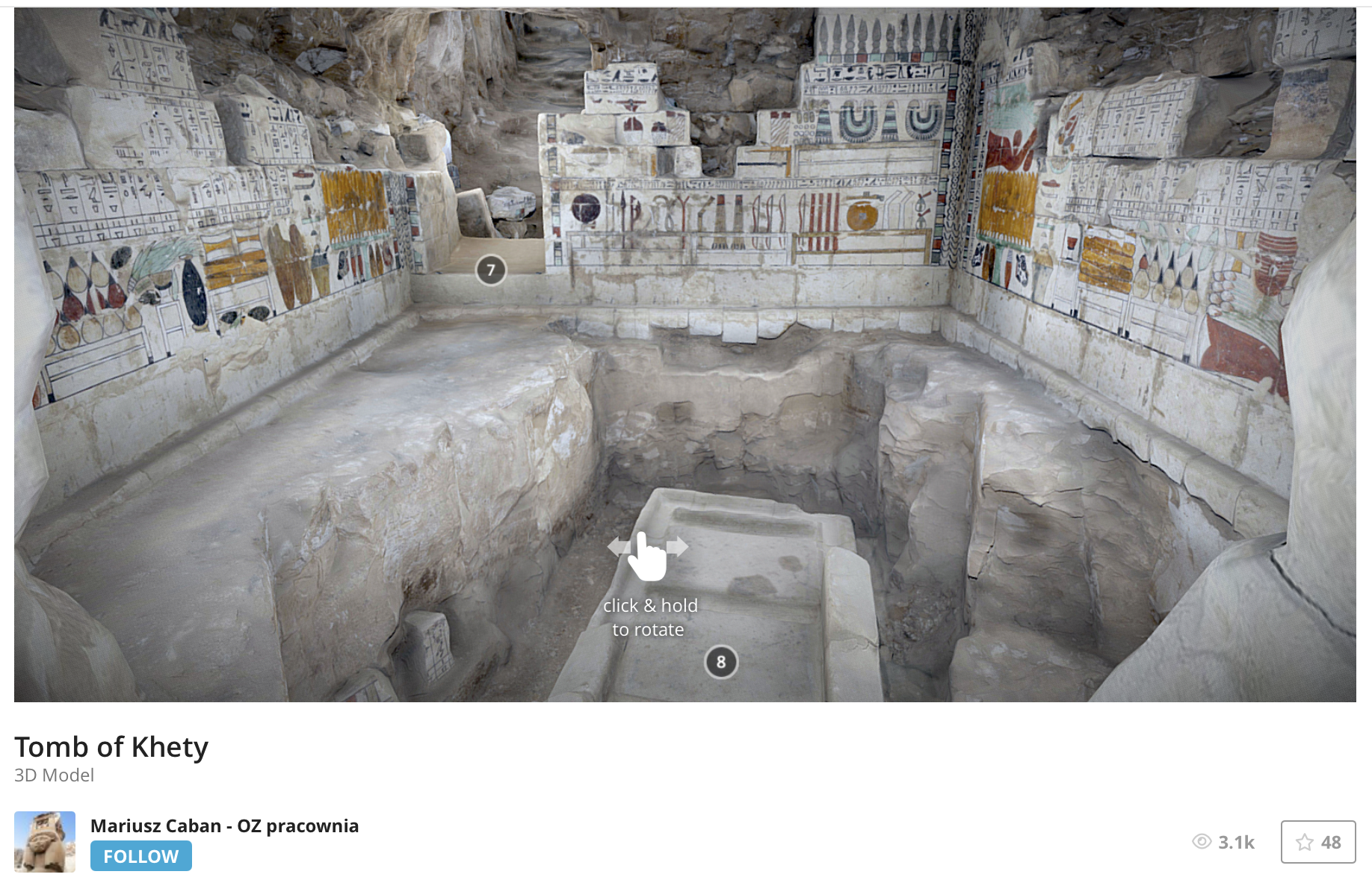 One particularly interesting tomb is that of Mentuhotep’s Treasurer, Khety. The walls of the burial chamber are painted with the same imagery seen inside the sarcophagus of Ashayet.  You can visit this tomb virtually through this 3D model.