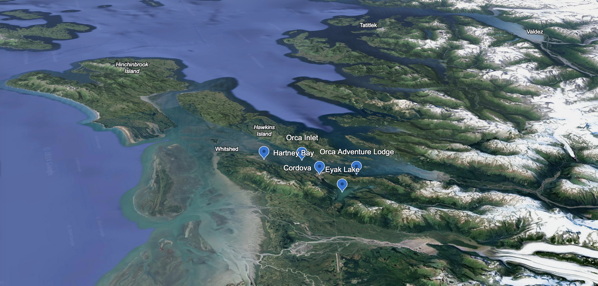 The Cordova area was historically home to the native Eyak people, and much of the area around Cordova, including Hartney Bay, is owned by the Eyak Native Corporation. Living on the such rich fishing grounds, the Eyak were often raided by the larger tribe of Chugach people on the the west, while trading and intermarrying with the Tlingit people on the east. The combination of diseases introduced by European settlers and competition with American canneries nearly wiped out the population in the 19th century. Villages around Eyak Lake were abandoned as people died and survivors moved to Orca.