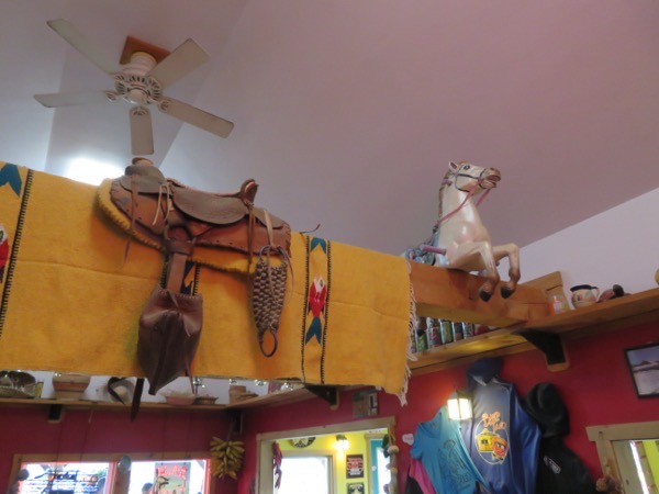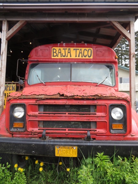 We decided to have lunch in town, only to find that (a) many of Cordova’s restaurants and cafes were permanently closed and (b) those not permanently closed were not open on Mondays. So lunch was at the only game in town: Baja Taco. We liked its funky vibe and the food was good.